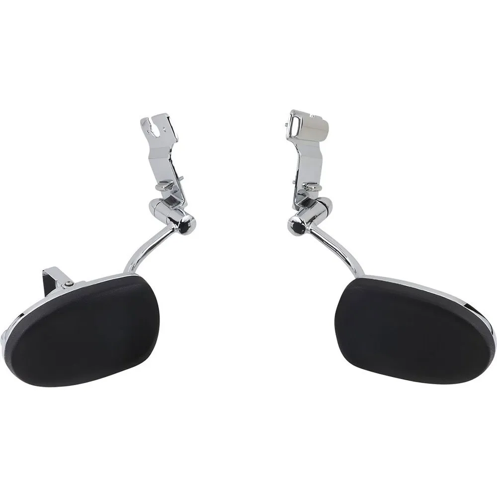 Chrome mounting brackets fasten to the trunk and provide a sturdy mount for the swing-away armrests.