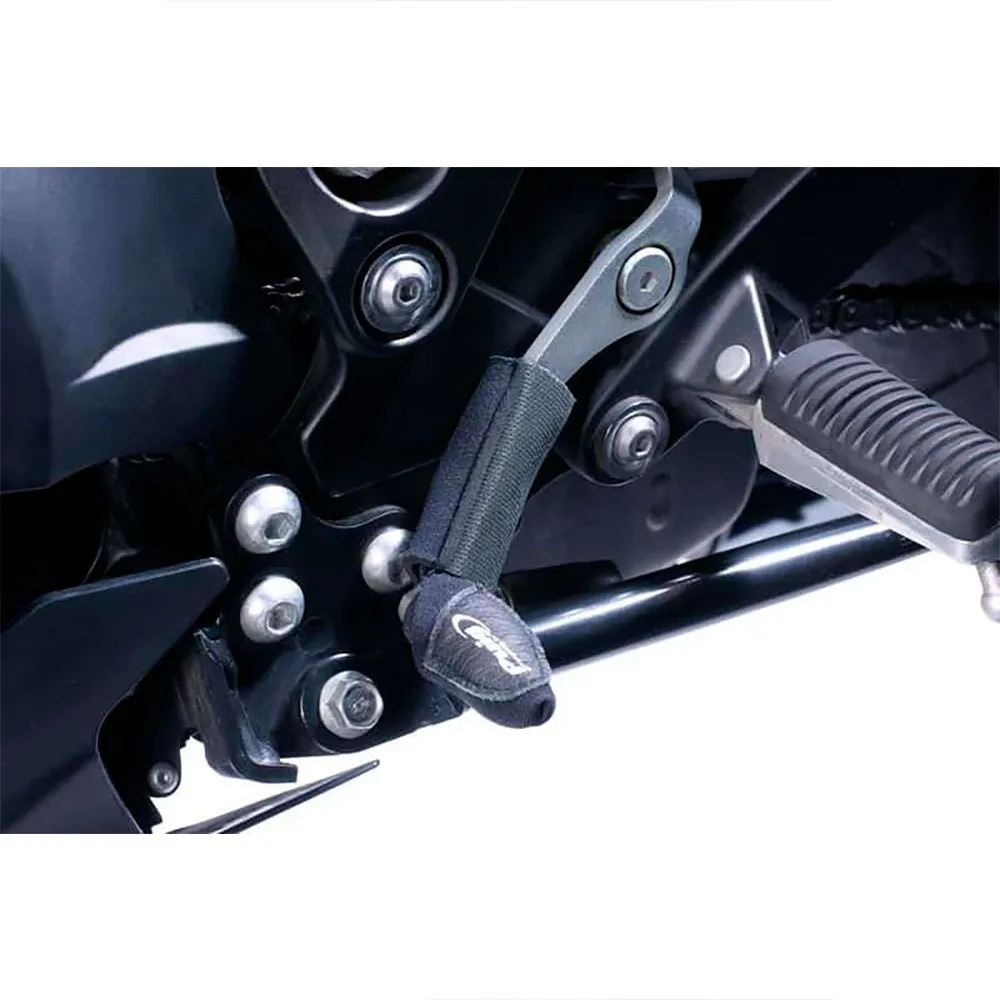 This motorcycle gear shift protector effectively keeps footwear clean from scuffs and dirt. Praised for being easy to put on, its design provides a secure fit that stays put, though it may shift slightly with use. The quality, soft wetsuit-like material makes this durable shift pad a great accessory for bikers who wear regular shoes