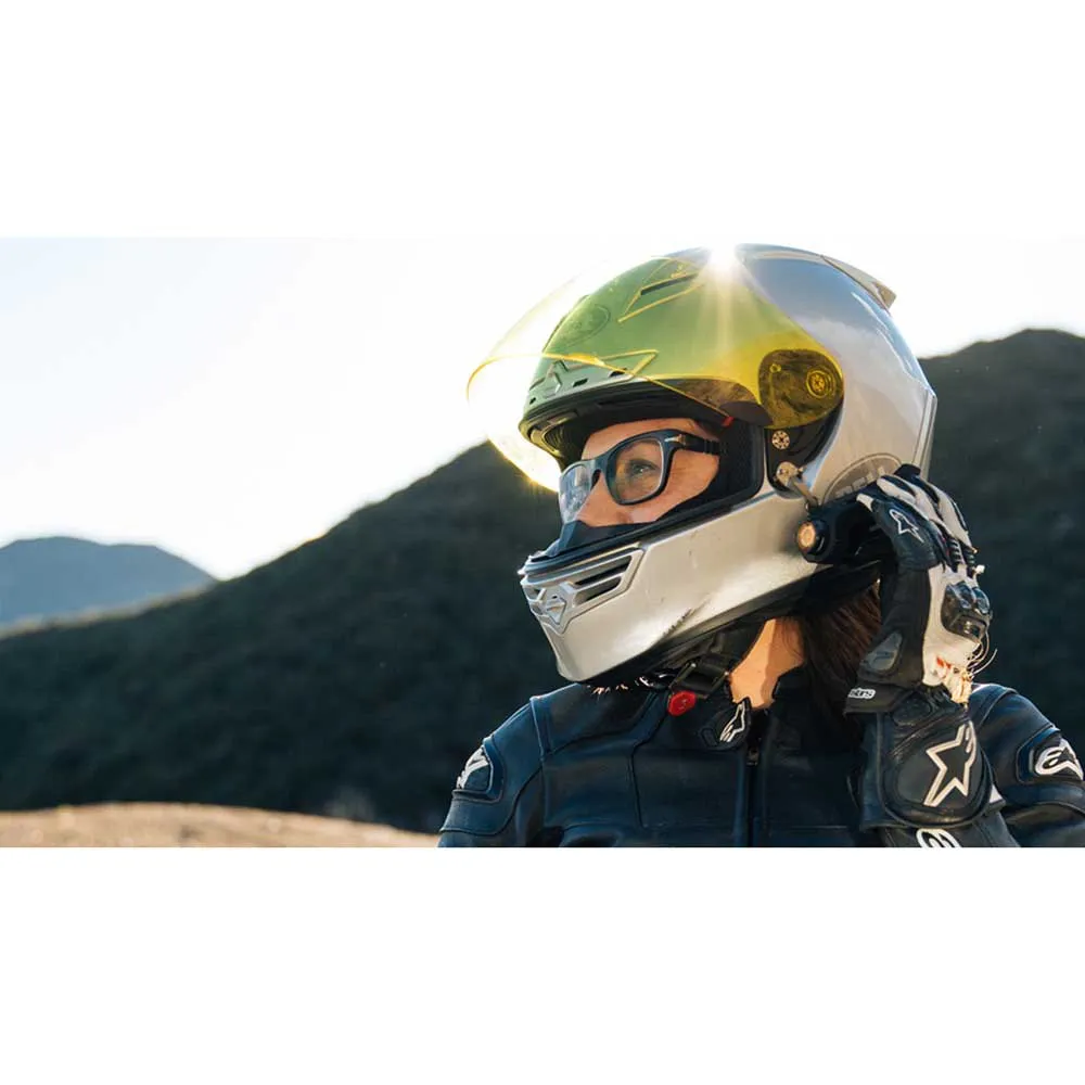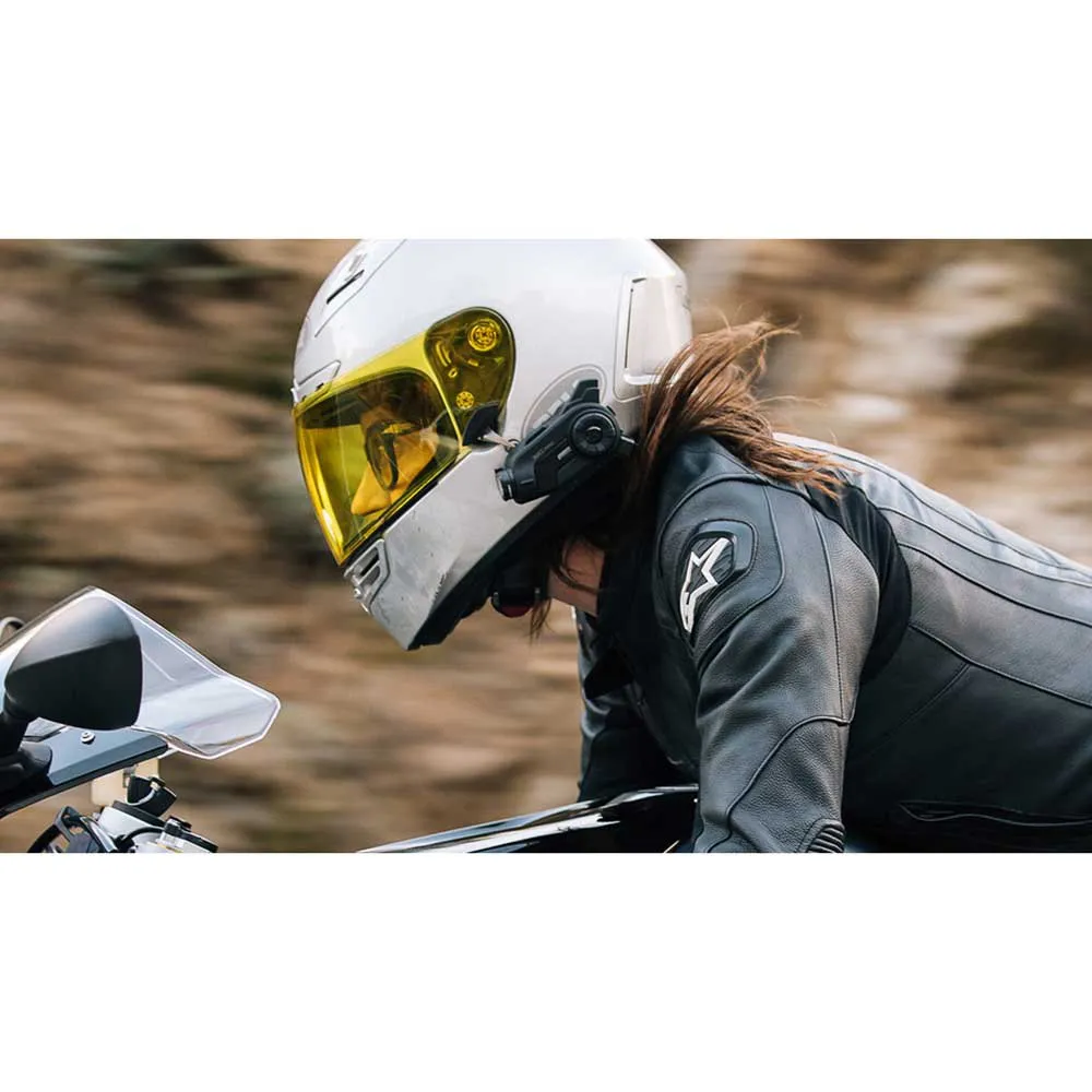 - Stay in touch with up to three other riders via built-in Bluetooth intercom up to 1.6 km (1.0 mile) away. The 10C Pro motorcycle Bluetooth helmet camera and communication system allows riders to take and make phone calls, listen to music and GPS, connect with onbike entertainment systems, use the built-in FM tuner and more. Integrated voice prompts advise riders on the use of their device with instant status updates of their 10C Pro.
