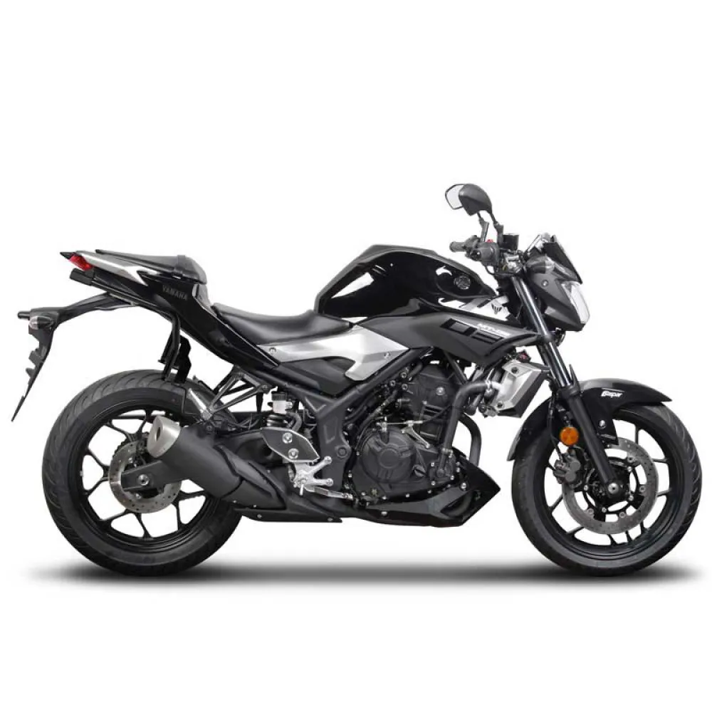 Equip your Yamaha MT03 (2021-2023) with the innovative SHAD 3P System side case fitting. As one of SHAD´s most important innovations, this kit features a unique integrated design that blends perfectly with your motorcycle´s lines. Its lightweight construction minimizes impact on the bike´s center of gravity, improving safety and preserving your agile handling. Easy to assemble, this fitting is the ideal, secure, and stylish solution for adding SHAD side cases to your MT03