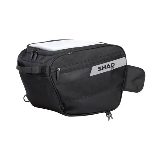 With an upper compartment for maps, tablets, GPS, with touch screen.Features:- Zipper closure main compartment, with lock loop for greater security.- 2 side pockets with zip fastener.- Zipper with resistant pullers suitable to use with gloves.- Cushioned carry handle.- Adjustable shoulder strap.- Touch Screen- Capacity for a jet helmet.- Several reflective parts for security.- Universal Adaptation: