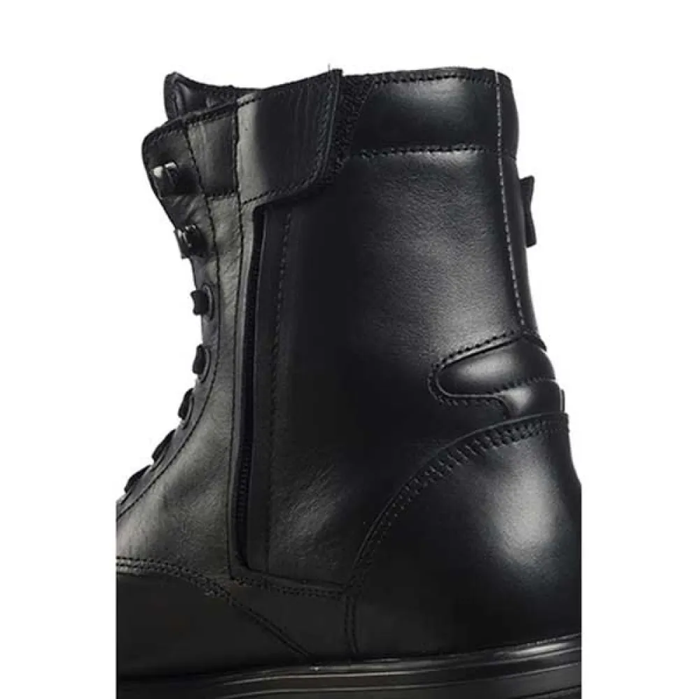the outer with a water repellent treatment, internal protectors for both sides of the ankles, the insert in matching leather in the gear shift areas, the waterproof lining, the superior padding, in addition to the double closure by laces and zip.