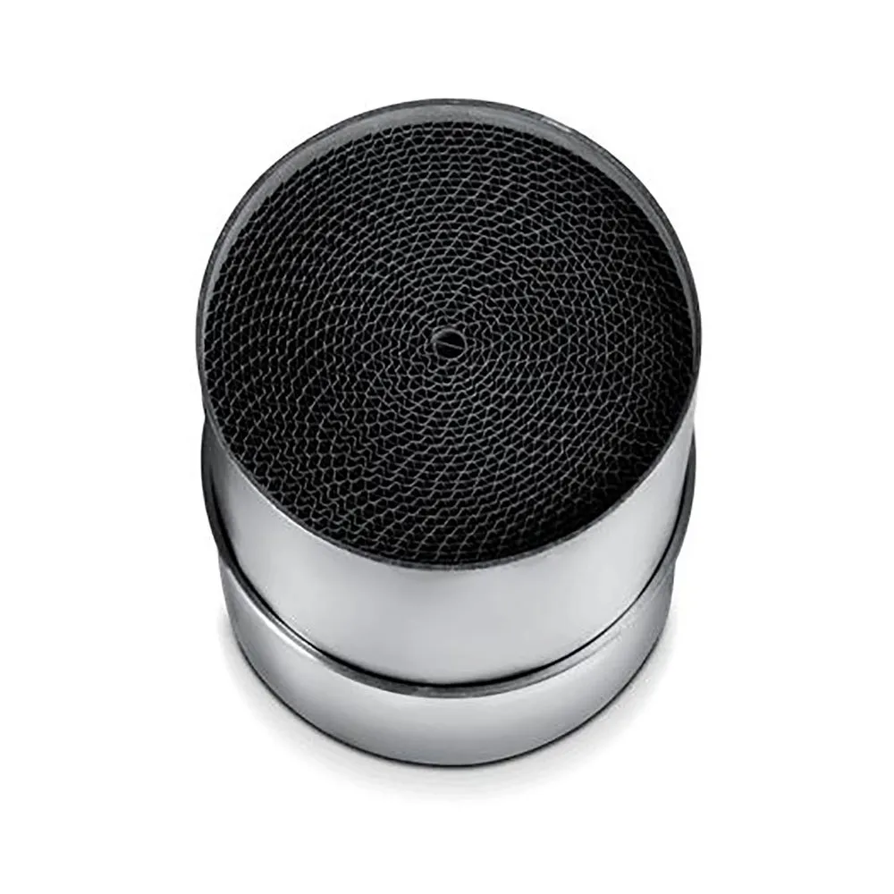 El convertidor catalítico es una estructura metálica en forma de panal que incorpora metales preciosos (paladio, rodio y platino) en su superficie.