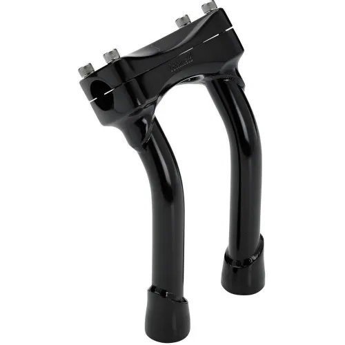 Las bandas ascendentes Murdock Pullback están disponibles en alturas de 8, 10 y 12 pulgadas con 2 ”de barrido hacia atrás. Todos los elevadores Murdock cuentan con abrazaderas superiores de acero fundido de inversión y bases con rosca inferior. Están conectados por dos tubos de cromólisis 4130 de 1 pulgada de diámetro x 0.120 ”(3 mm) de pared sin costuras. Después de la soldadura TIG, la unidad terminada se pule a mano y se somete a cromo triple o negro satinado para brindar estilo y durabilidad. Las bases roscadas en las bandas ascendentes Murdock están en centros de 3.5 ”(89 mm) para adaptarse a la mayoría de los árboles triples HD de posventa y de posventa con abrazaderas de barra removibles. Por supuesto, el patrón de pernos en la abrazadera de manillar de una pieza de esta tubería vertical se ajusta a la mayoría de los soportes de alta velocidad y tacómetro de alta definición.