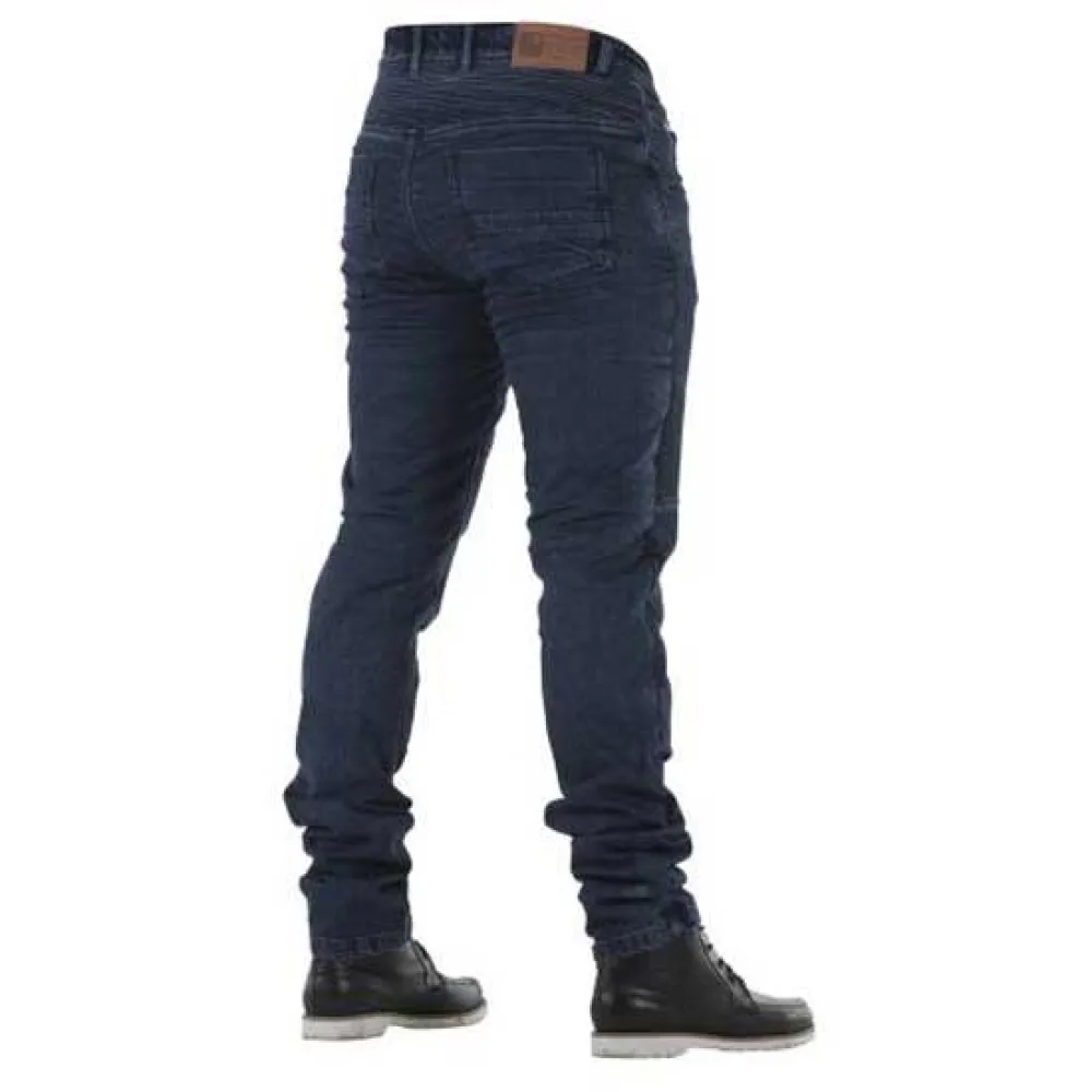 Pantalones de motocicleta de alta calidad que ofrecen un ajuste cómodo y fiel a la talla. El corte moderno y ajustado es elegante, mientras que la tela elástica garantiza flexibilidad. Un forro grueso y protector brinda confianza en la carretera. Ideales para conducir en primavera y otoño, pueden ser demasiado cálidos para el verano. Estos modernos vaqueros de montar se consideran una excelente opción por sus excelentes materiales y diseño bien acabado. Tenga en cuenta que los protectores podrían no estar incluidos.