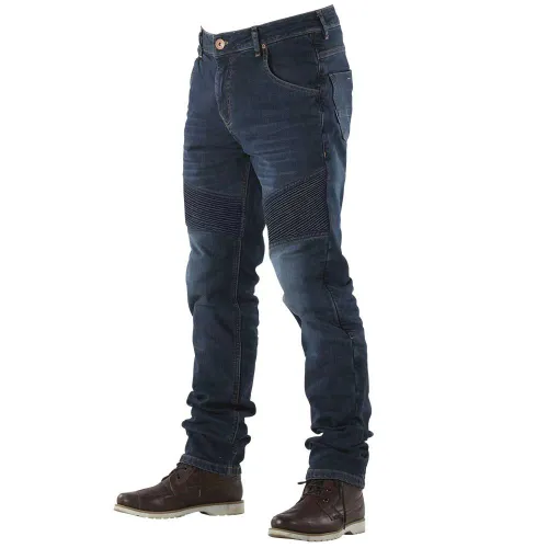 Pantalones de motocicleta de alta calidad que ofrecen un ajuste cómodo y fiel a la talla. El corte moderno y ajustado es elegante, mientras que la tela elástica garantiza flexibilidad. Un forro grueso y protector brinda confianza en la carretera. Ideales para conducir en primavera y otoño, pueden ser demasiado cálidos para el verano. Estos modernos vaqueros de montar se consideran una excelente opción por sus excelentes materiales y diseño bien acabado. Tenga en cuenta que los protectores podrían no estar incluidos.