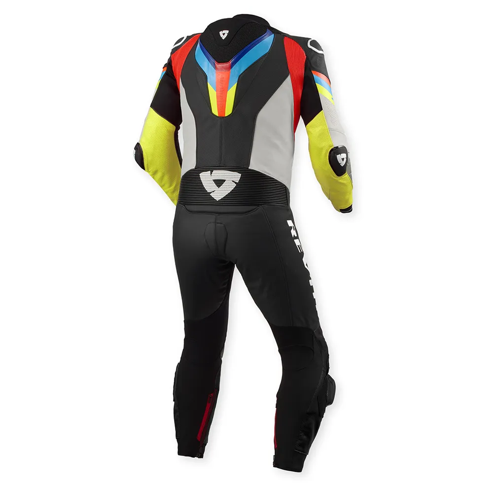 Experimenta la máxima expresión del estilo deportivo con el mono de una pieza REVIT Quantum 3. Sus atrevidos gráficos de ´glitch´ digital inspirados en los 80 y sus llamativos colores hacen una declaración en la pista o en la calle. Este mono con clasificación AAA combina piel de vacuno Monaco, tejidos elásticos y malla de aire 3D para un ajuste de alto rendimiento que se mueve contigo. Con armadura exterior aerodinámica, protectores internos Betac® y compatibilidad con el airbag Tech-Air®, el Quantum 3 está diseñado para la velocidad, la seguridad y un estilo que destaca