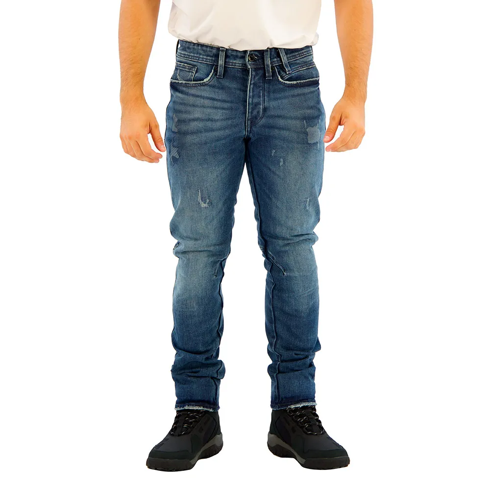 Los vaqueros para moto Rilan TF tienen un corte ajustado y son cómodos en la cintura y los muslos, mientras que de la rodilla para abajo el modelo se estrecha, haciéndose más estrecho a medida que llega al tobillo.