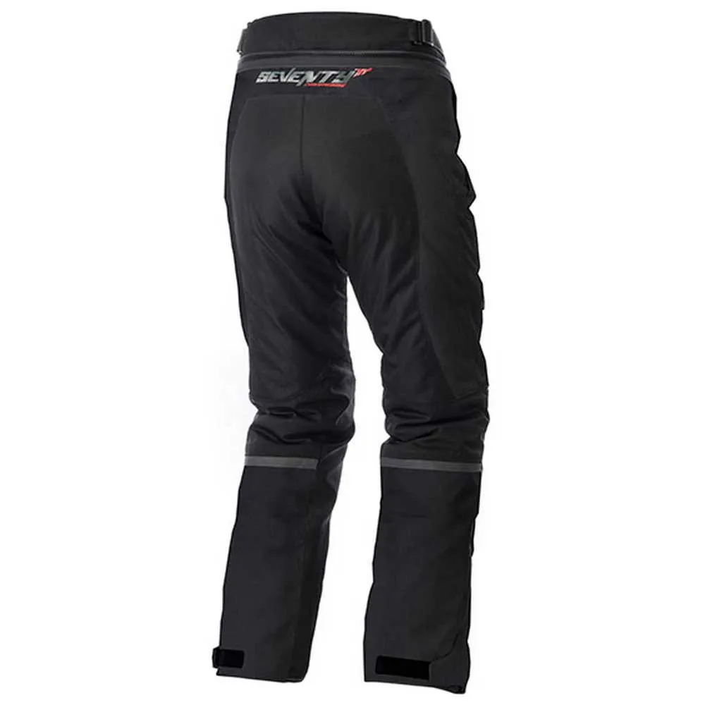 Triple layer Touring-housut, joissa on korkea kestävyys, kalvo ja irrotettava lämpövuori. 100% vedenpitävä ja sopii mataliin lämpötiloihin. Sisältää suojan lantioiden polvilleen ja sivuille paremman turvallisuuden ja suojan takaamiseksi ja tuuletettavaksi etupuolella, jolloin hengitys paranee. Sisällytä heijastavia paneeleja parempaan näkyvyyteen. SEVENTY DEGREES. Ei voinut olla mukavampaa…