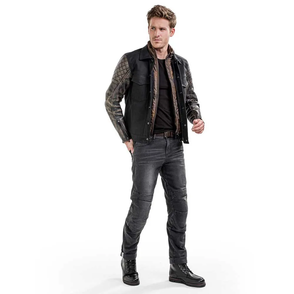 La veste Crossroads combine le développement continu de nos matériaux denim de haute technologie avec du cuir fin et sélectionné à la main pour créer quelque chose de nouveau dans notre collection. Une combinaison de 12,5 oz. Le denim Cordura® pour le torse et le cuir Buffalo Brisk au traitement unique et très résistant à l'abrasion sur les manches donnent à cette veste une saveur qui lui est propre. S'en tenir à notre credo de la technologie sur mesure, le Carrefour apporte plus que l'apparence seul, car il est prêt à être utilisé à diverses températures. Une doublure thermique confortable et amovible est installée, qui se double d'une veste de loisirs grâce à son portabilité séparée. Les jours les plus froids, la languette coupe-vent du col est une contribution bienvenue pour aider à garder le vent à l'extérieur de la zone du cou tandis qu'il peut être facilement retiré lorsque les températures remontent. À l'extérieur, les poches fendues et sur la poitrine offrent un espace de rangement facile d'accès, avec une poche intérieure pour garder vos affaires importantes à proximité. Les protections de membres SEESMART ™ offrent la bonne protection, qui peut même être améliorée avec notre insert de protection dorsale SEESOFT ™ CE niveau 2. Pour ajouter à la protection et au confort, vous pouvez vous connecter à votre jean, soit en utilisant la boucle de jeans, soit en le connectant directement à notre ceinture Safeway 2 à l'aide de la fermeture à glissière de connexion courte.