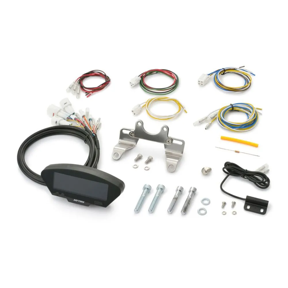 - Indicatori LED: indicatore di direzione sinistro + destro, Hi/Lo, Neutro, Pressione dell´olio, Temperatura dell´acqua, Avvertimento