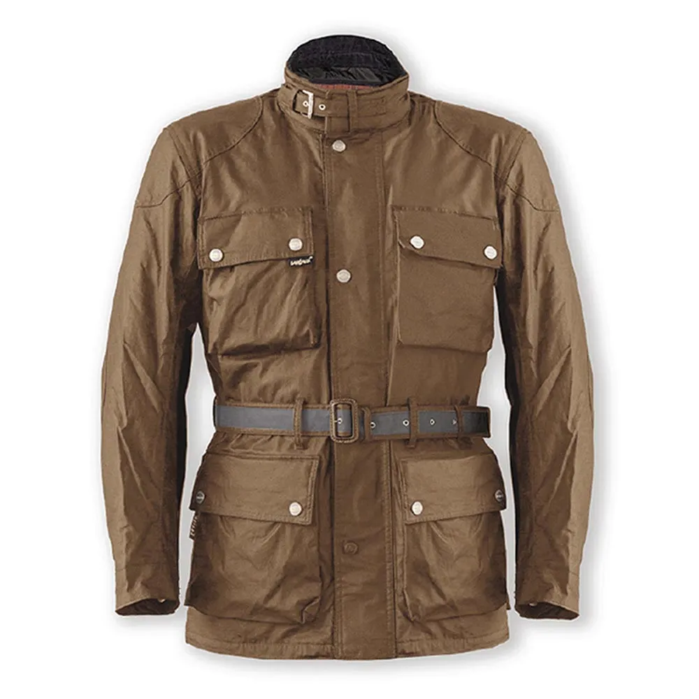 Tessuto Wax Cotton style della Samtex. Protezioni omologate 1621-1 CE Powertector in spalle e gomiti. Paraschiena di materiale schiumato. Membrana traspirabile, anti-vento e impermeabile Reissa con costruzione Z-liner, in strato sciolto tra il fodero interno e il materiale esterno. Imbottitura termica estraibile foderata in tessuto Tartan scozzese rosso e rivestimento interno con retino anti sudorazione. Quattro taschini frontali e due per le mani. Doppia coperta anteriore, doppia cerniera per una maggiore comodità e velcro. Taschino interno sia nella parte smontabile che in quella fissa. Regolazione del collo per fibia. Cinturone con ampia superficie rifrangente di colore scuro 3M e reversibile per una maggior versatilità. Bottoni per la regolazione del fondo fianchi e dei polsini. Disponibile anche nella versione da donna.