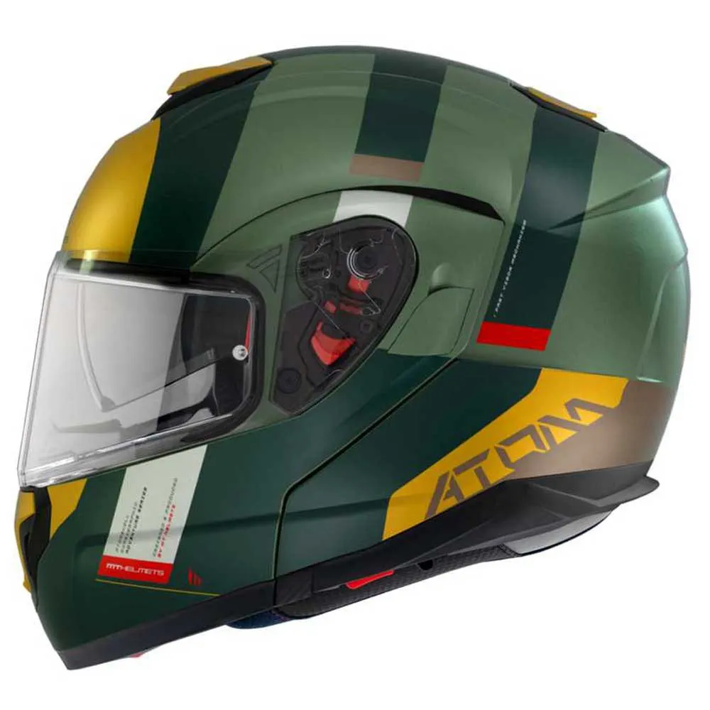 Il casco modulare Atom SV Gorex di MT Helmets in verde opaco è un casco ad alte prestazioni progettato per i motociclisti appassionati che richiedono sia stile che funzionalità. La finitura opaca verde conferisce al casco un aspetto elegante e alla moda che si abbina perfettamente a qualsiasi tipo di motocicletta. Il suo design modulare consente all´utente di cambiare rapidamente e facilmente il casco da uno a pieno facciale a un casco aperto, offrendo loro la massima libertà e flessibilità.