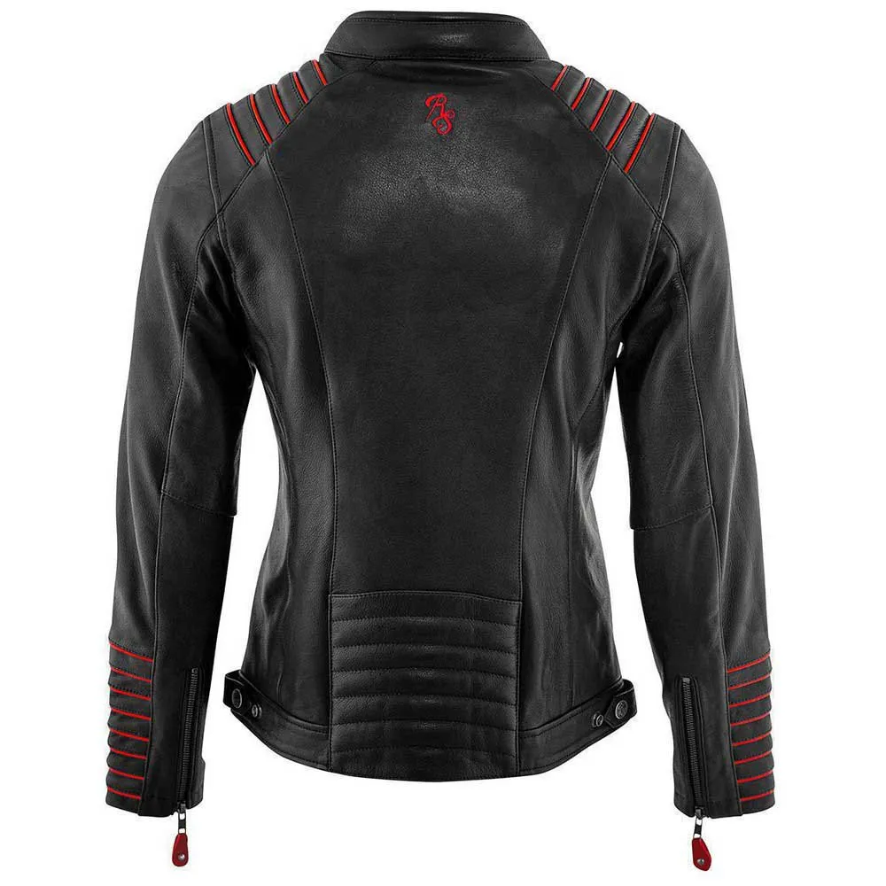 Unico, comodo e cool. L'Amanda ha tutto. Grazie alla morbida pelle bovina e al look casual, è un must have che puoi indossare tutto il giorno. Le diverse combinazioni di colori e la sottile fodera sulle spalle e sulle braccia rendono questa giacca eccezionale con un look distinto. Le protezioni CE flessibili rimovibili su spalle e gomiti garantiscono la tua sicurezza senza compromettere il comfort. L'Amanda può essere facilmente aggiornato con un paraschiena D30.
