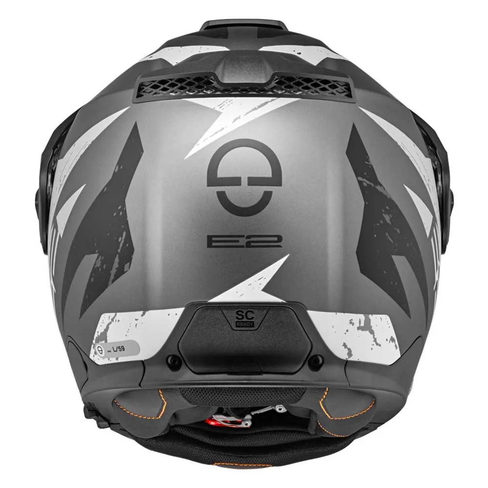 Lo Schuberth E2 è la seconda generazione di caschi Adventure di Schuberth e il secondo casco della gamma Schuberth con la doppia omologazione P/J e conforme al nuovo standard ECE 22.06. Lo Schuberth E2 è il mix perfetto tra il comfort della famosa serie Flip Up ´´C´´ e l'aspetto aggressivo e la sensazione di un casco fuoristrada. L'imbottitura interna personalizzabile offre una vestibilità perfetta a tutti i clienti, mettendo questo casco da avventura su un altro livello, pronto per affrontare i sentieri più polverosi.