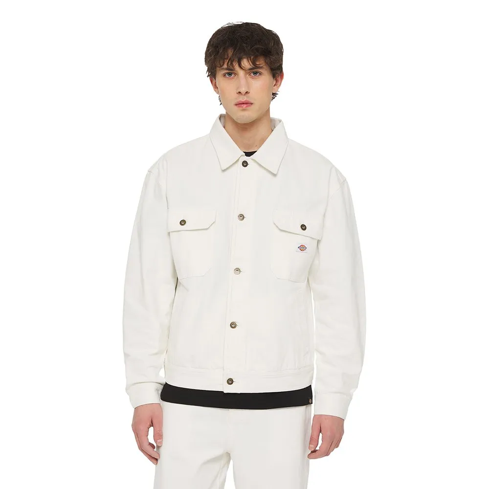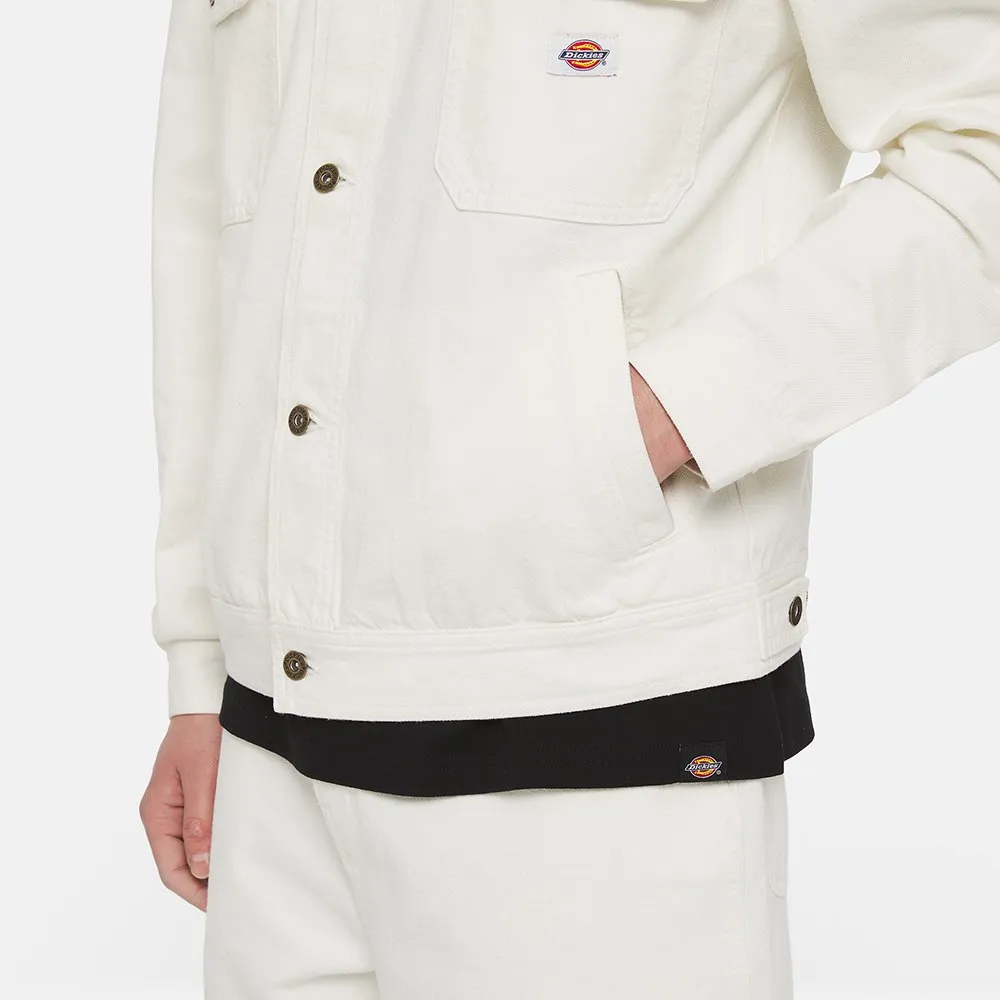 Een ongevoerd erfstuk met normale pasvorm met een body met klinknagels, twee klinknagels met knoopsluiting op de borst, twee zijdelingse steekzakken, iconisch geweven Dickies-label, verstelbare manchetten en tailleband.