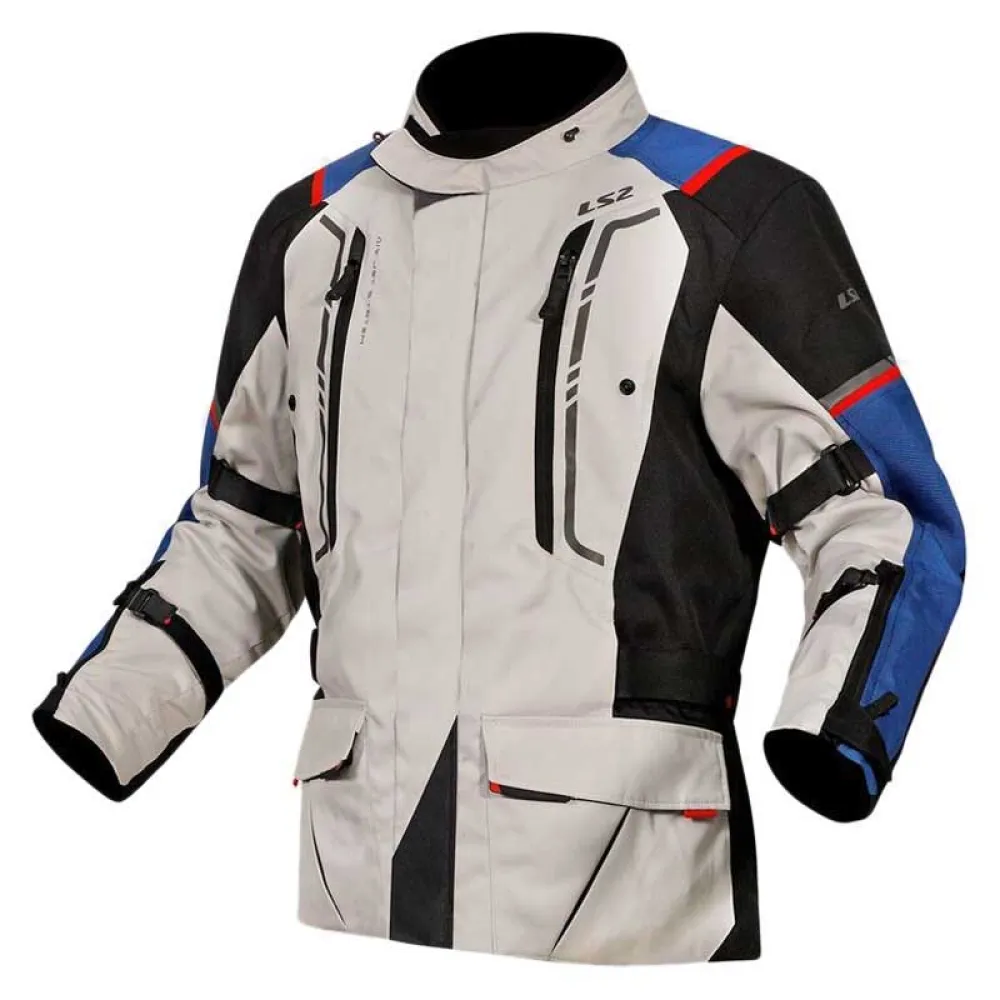 LS2 ´´Narvik´´ jasHeren, materiaal: 600D polyester stof met ripstop stofWaterdicht en ademend membraan (waterkolom 8.000 mm), luchtdoorlatendheid 5000 g/m²./24u, uitneembare thermische voering, YKK ritssluiting aan de voorkant, verstelbaar in de arm- en taillezone, 2 voorzakken aan de buitenkant en 1 binnenzak, reflecterende details, CE-goedgekeurde protectoren op schouders en ellebogen (EN 16211:2012 Level 1), elleboogprotector verstelbaar in 2 posities, rug- en borstprotector optioneel, verbindingsrits voor het bevestigen van een broek, CE-AA gecertificeerd.