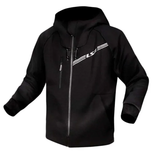 LS2 jas ´´Throttle´´ heren, materiaal: gebreide stof met een ´´katoen gevoel´´, Aramid vezel versterkt op de rug, met capuchon, duimlussen, 2 voorzakken aan de buitenkant, CE goedgekeurde protectoren op schouders en ellebogen (EN 1621-1:2012 Level 1) Elleboog protector verstelbaar in 2 posities, rugprotector LS2 851 Level 2 optioneel verkrijgbaar, CE-A gecertificeerd.
