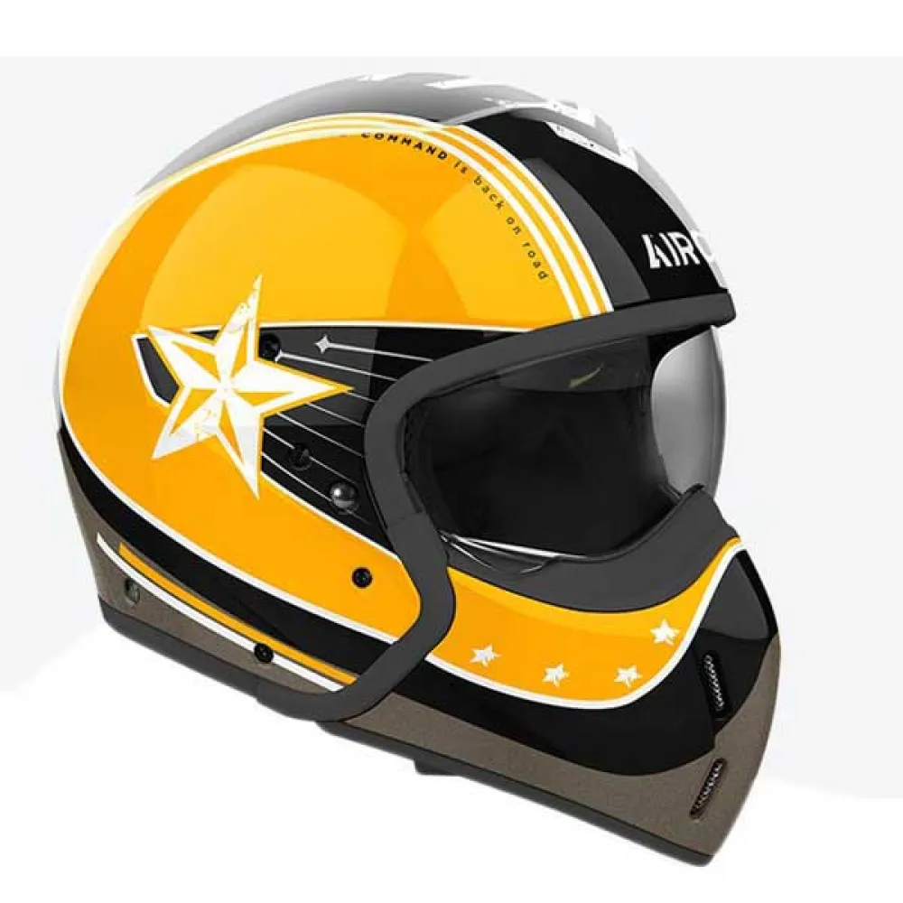 AIROH J110 Command modulærhjelm i gul glans er et stilig og funksjonelt valg for førere som ser etter allsidighet og komfort. Denne hjelmen har en modulær design, som gjør at førere enkelt kan bytte mellom helhjelm og åpen hjelm, avhengig av preferanse.