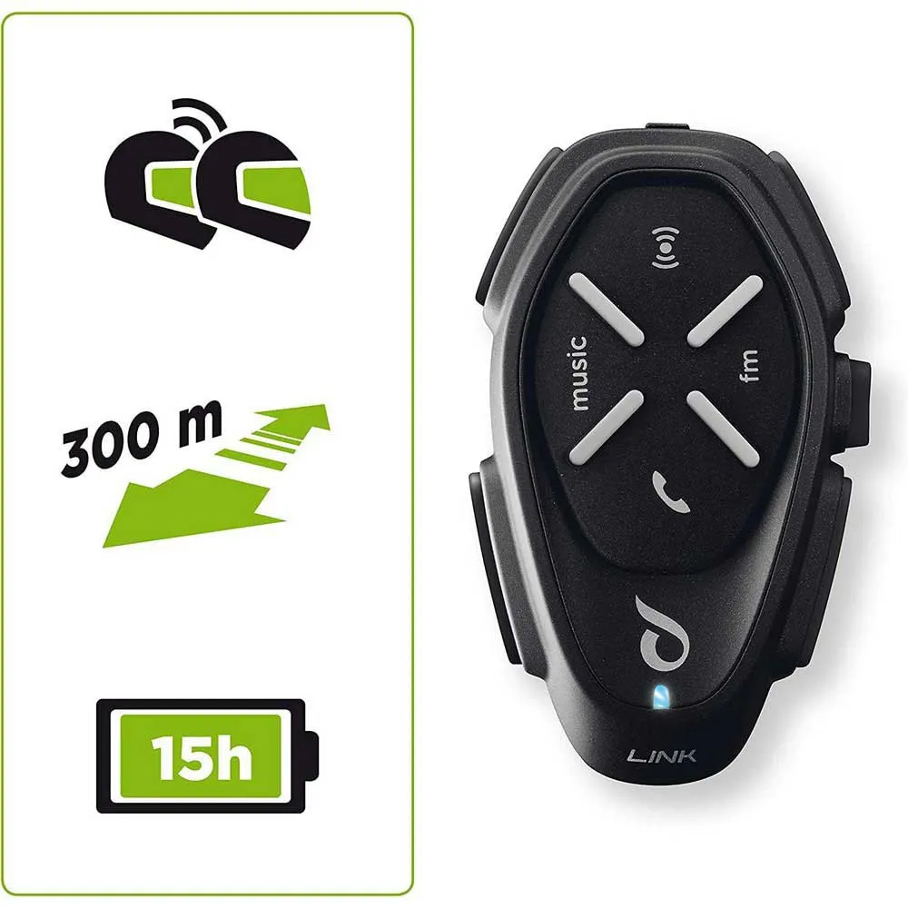 Dzięki możliwości połączenia z maksymalnie dwoma innymi motocyklistami, interkom Link Duo zapewnia stałą łączność z towarzyszami podróży. Urządzenie ma również zasięg do 500 metrów, dzięki czemu idealnie nadaje się do grupowych przejażdżek lub długich podróży.