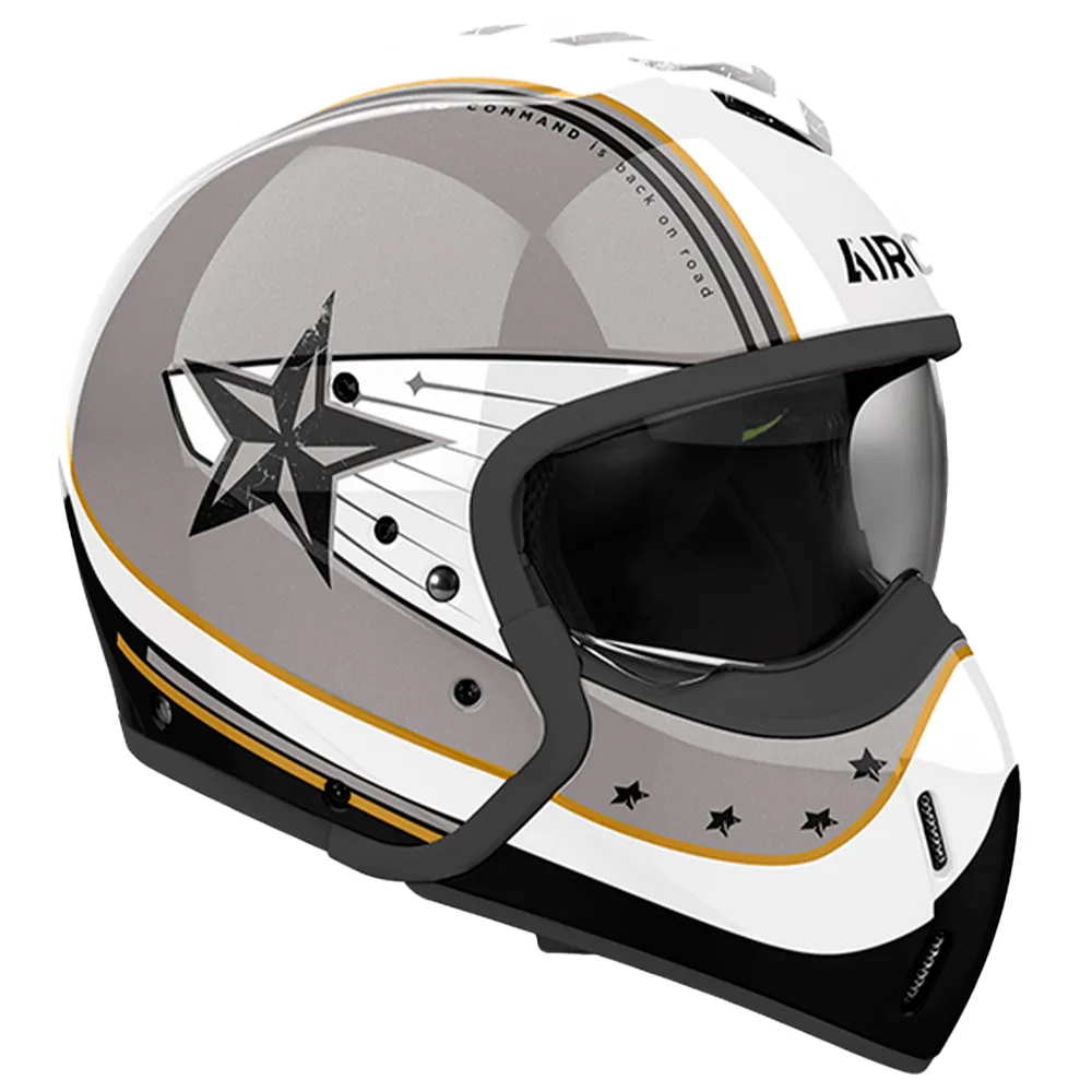 O design modular do AIROH J110 Command permite fácil conversão de um capacete integral para um capacete aberto, dando aos motociclistas a flexibilidade de se adaptar às condições de pilotagem em mudança. O capacete também possui uma viseira totalmente ajustável e viseira solar integrada, proporcionando visibilidade ideal em todas as condições de iluminação.