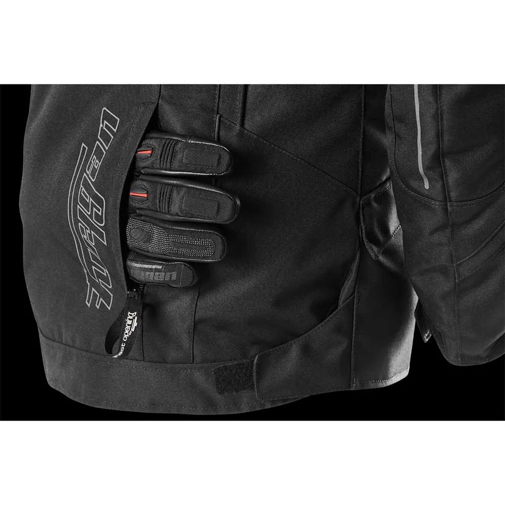 - O bolso traseiro, impermeável e acessível sem remover a jaqueta, permite guardar luvas ou o forro térmico removível.