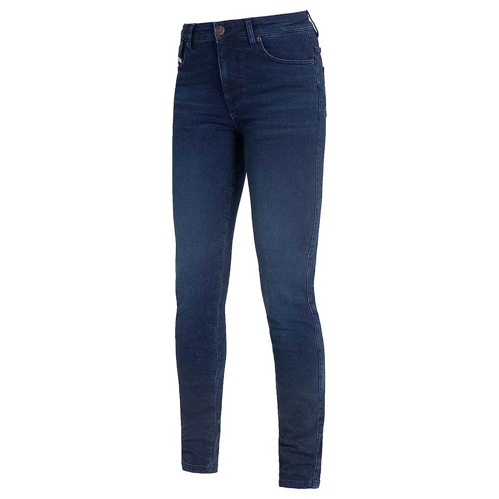 Os jeans femininos Monolayer Ruby beneficiam de uma flexibilidade extremada. Isso é obtido através de uma mistura altamente elástica que lhe permite um ajuste perfeito com níveis fantásticos de conforto. Claro que você não terá que comprometer a segurança, pois nossos jeans de ganga XTM Monolayer de cintura alta com cinco bolsos são certificados AA e o protegerão em todas as situações, com protetores até o joelho e a anca.