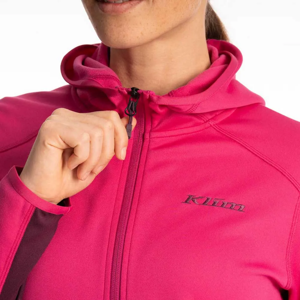 O Moletom com Capuz Solitude é um moletom de fleece de desempenho médio com capacidade de absorção de umidade e conforto térmico. O moletom feminino de zíper completo e caimento regular também inclui uma gola alta para proteção em condições climáticas adversas, juntamente com um fleece escovado elástico para conforto e movimento irrestrito.