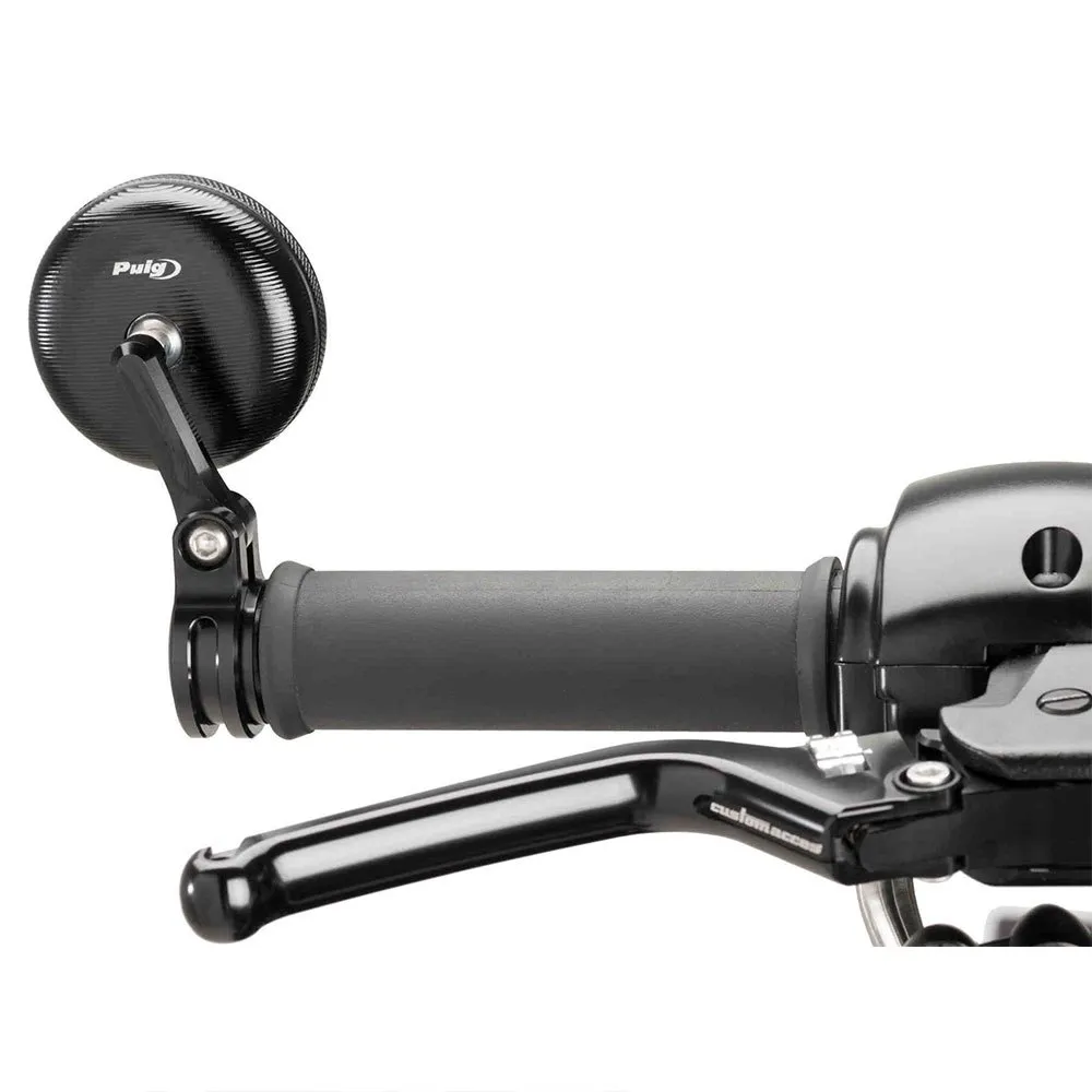 Estes espelhos Puig ostentam uma qualidade impressionante, fabricados em alumínio maciço usinado para uma sensação premium. As principais características incluem uma elegante lente de espelho com tonalidade azul e um design compacto e discreto. A construção sólida e os materiais de alta qualidade tornam estes pequenos espelhos de motocicleta uma excelente escolha por sua estética elegante e minimalista.
