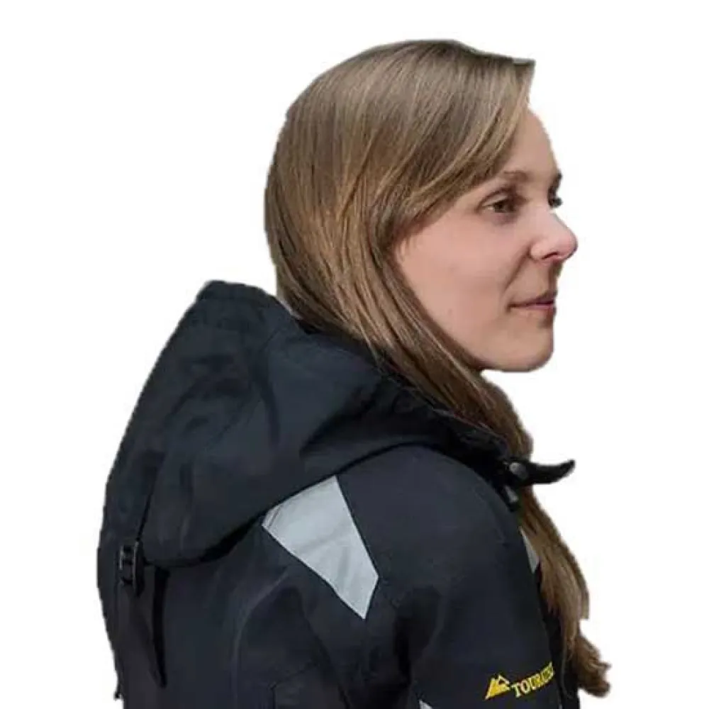 Capuz TOURATECH: Proteção versátil contra intempéries para a mulher aventureira.
