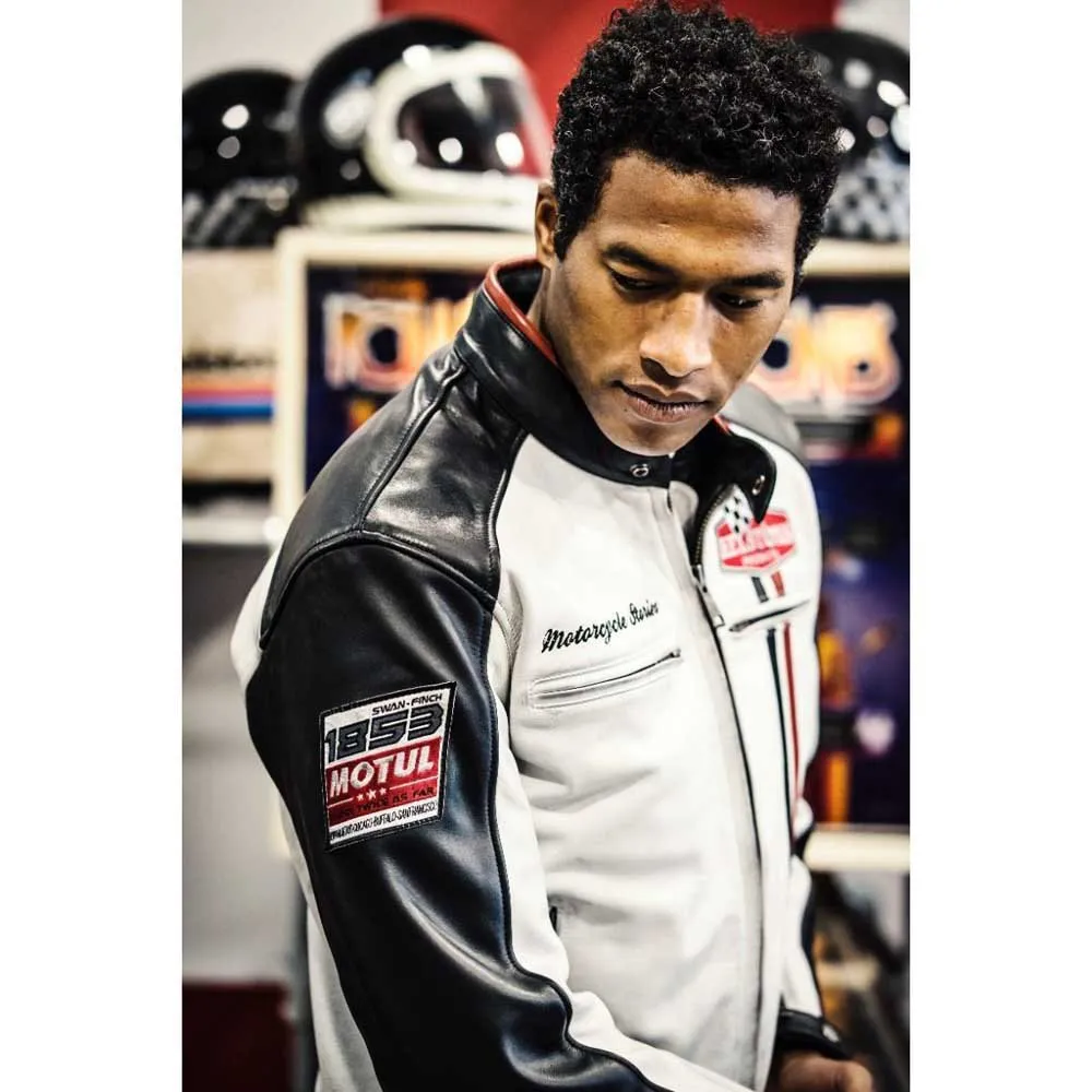 HELSTONS Jay-läderjackan i svart/vitt är en snygg och mångsidig jacka för män. Jackan är tillverkad av högkvalitativt läder och är både slitstark och bekväm att bära. Den svarta och vita färgkombinationen ger en modern och tuff touch till den klassiska motorcykeljackan. Jackan har en elegant och slimmad passform, med detaljerade sömmar och dragkedjor för extra stil. Perfekt att bära både på och av motorcykeln, denna jacka är ett tidlöst och viktigt plagg i varje mans garderob.