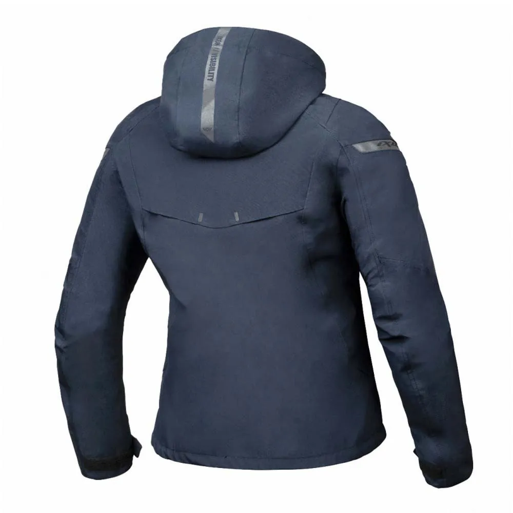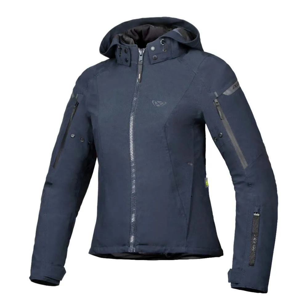 Modern urban stil: En elegant softshell-design med en feminin skärning och en avtagbar huva för användning utanför motorcykeln.