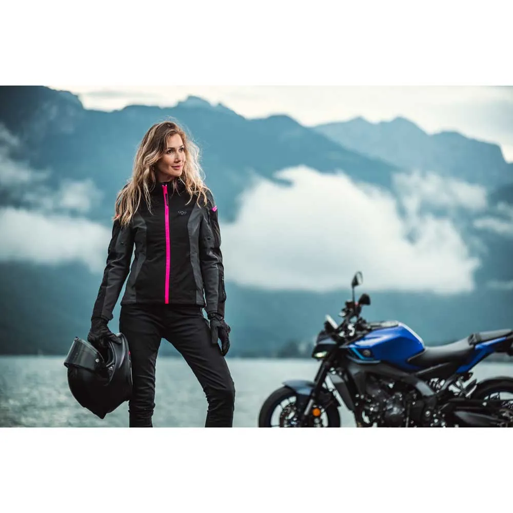 Modern urban stil: En elegant softshell-design med en feminin skärning och en avtagbar huva för användning utanför motorcykeln.