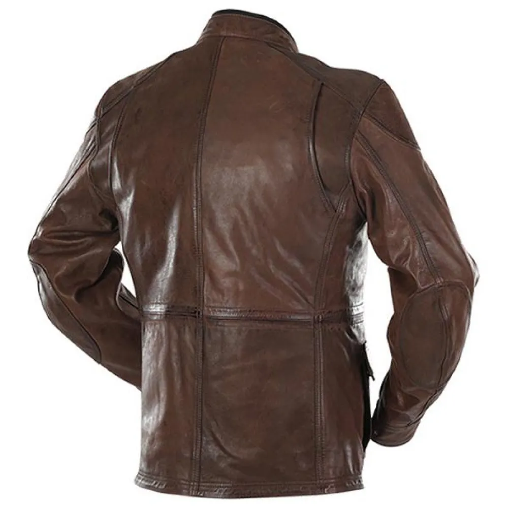 Maverick motorcykeljacka har en tidlös, klassisk stil och levereras i starkt, smidigt, satinmjukt läder. CE-godkänd, den levereras med nivå 2-skydd och armbågsrustning. Midjan kan justeras från insidan. Det avtagbara termiska fodret och det vattentäta membranet gör att det kan användas under olika årstider.