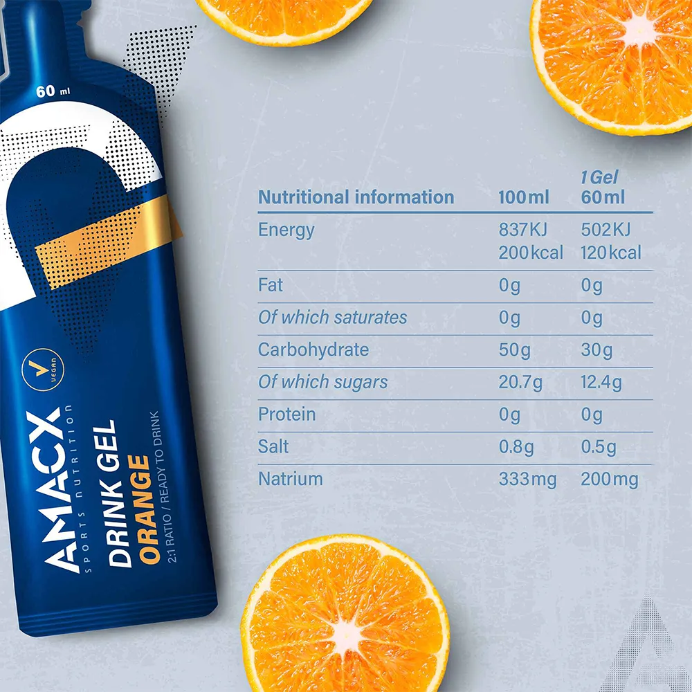 Produktbeskrivelse af Amacx Energigel appelsin 60ml