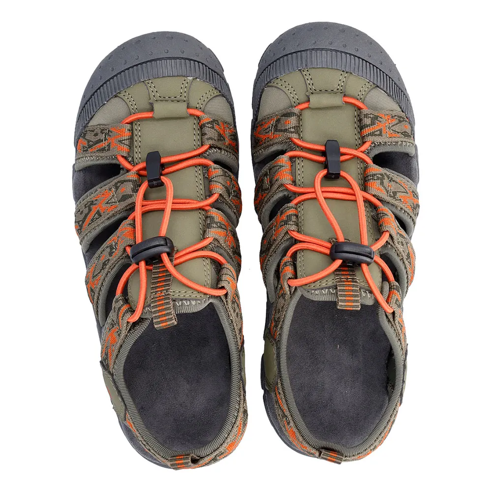 En børneudgave af den voksne herremodel, KIDS SAHIPH er en atletisk udendørssandal med lukket tå, der har en overdel lavet af stofstropper placeret på en mikrofiberfodseng.