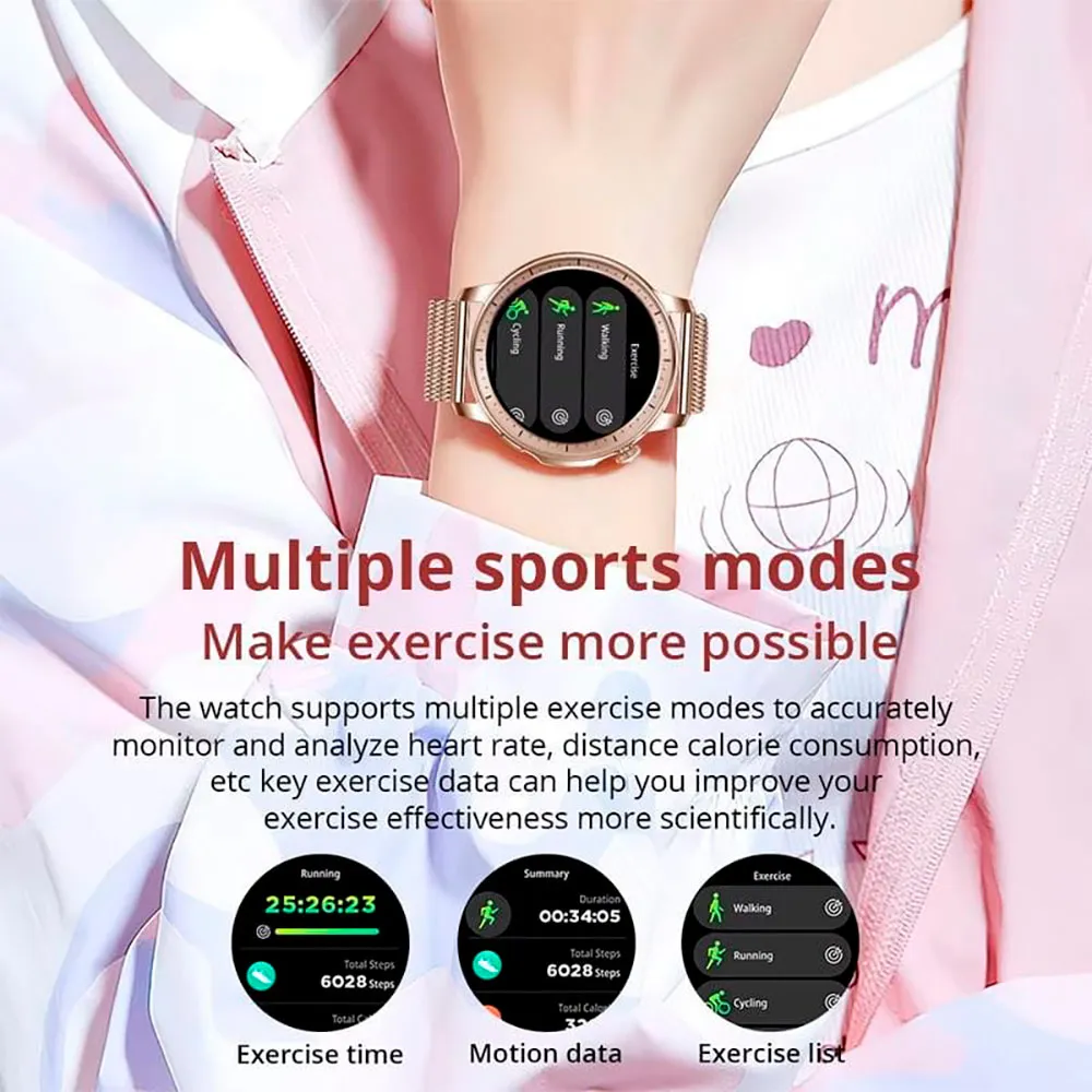 1.32-tommers AMOLED-skærm - Dobbelt Bluetooth - Bluetooth-opkald - IP68 - Puls- og SpO2-sensor - Blodtrykssensor - Sportsgrene - Kvindehelsekontrol - Op til 5 dage - Sølv.