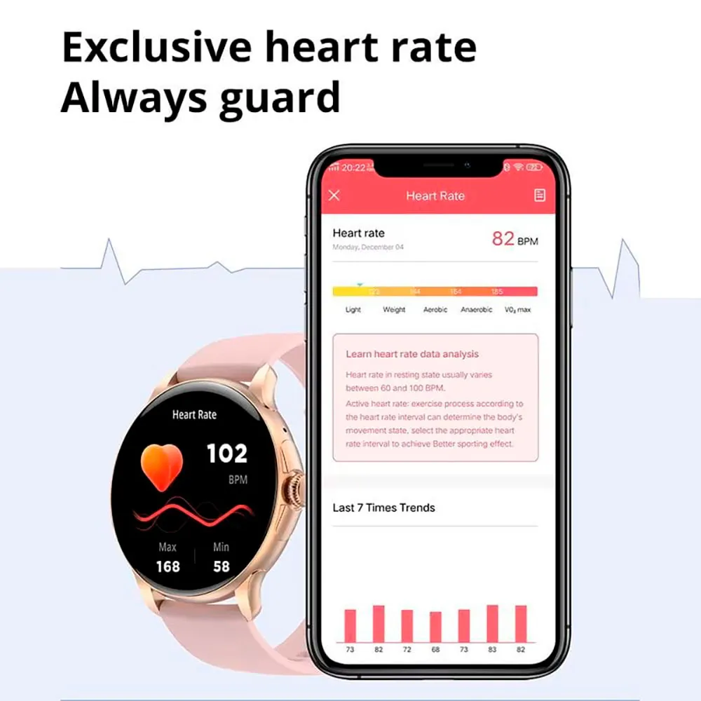 - Colmi V72 har en stor 1.43-tommer AMOLED-farveskærm med en indbygget rotationsknap og en silikonerem, et smudsafvisende materiale, der er let at rengøre og vedligeholde. Det har også Bluetooth v5.3-forbindelse til tilslutning til din smartphone. Denne funktion giver dig mulighed for at se smartphone-notifikationer på dit ur og foretage opkald takket være den indbyggede højttaler og mikrofon. Det giver dig endda mulighed for at tjekke vejret og styre musik fra dit håndled.