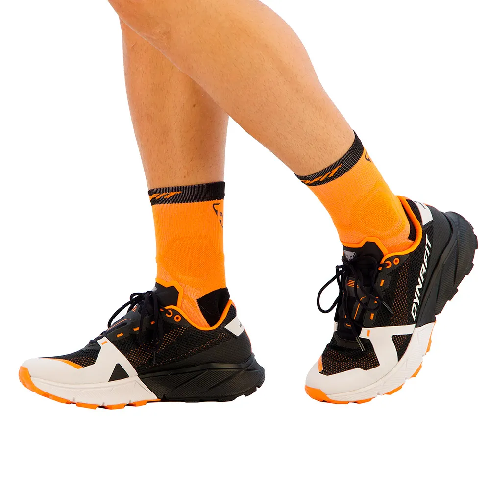 Overvind ultralange distancer med DYNAFIT Ultra 100. Udviklet med eliteatleter rammer denne sko den perfekte balance mellem maksimal stødabsorbering, aggressivt greb og overlegen energireturnering. Dens lette, responsive mellemsål giver en fjedrende fornemmelse, mens Vibram® Megagrip ydersålen med nye trækkraftknopper giver sikkert greb på enhver overflade. På trods af dens høje sålhøjde og komfort forbliver den præcis og livlig, og bærer dig til målstregen med en ny personlig rekord