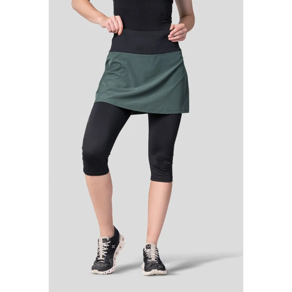 Damestafetten nederdel vil helt sikkert skille sig ud i din garderobe. Denne sportssommernederdel er lavet af stretchy, letvægts AFT Stretch, der er åndbar og har UPF 30. Takket være den integrerede elastik under knæshortsene er den perfekt til forskellige sommeraktive sportsgrene, såsom løb, men også til gåture i naturen. Nederdelen har en bredere elastisk linning, så den sidder godt og ikke begrænser bevægelsen. Den har en mindre lomme bagpå taljen. Med sin alpine pasform og dekorative syninger vil du ikke kun føle dig godt tilpas, men også se godt ud.