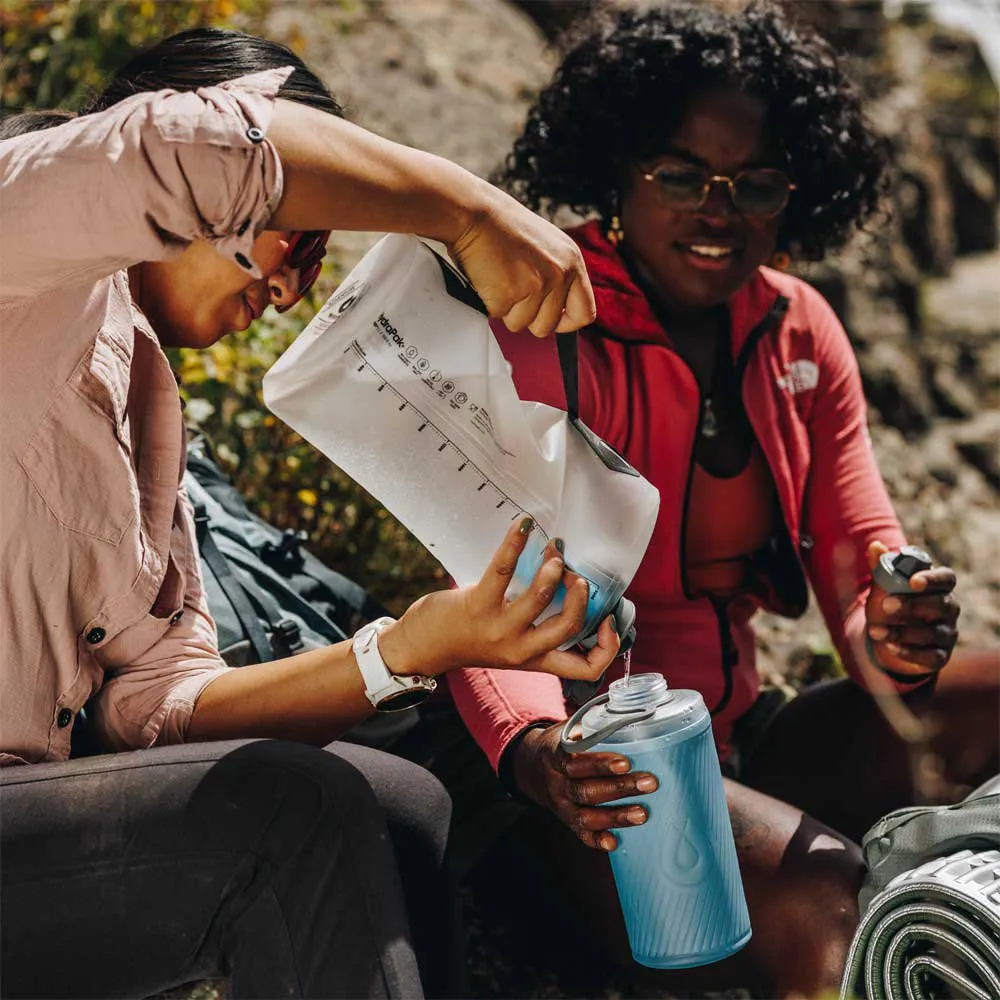 - Kompatibel med 42 mm gevindforsynede backcountry-vandfiltre, Katadyn® BeFree™-filteret skrues på toppen, så du kan filtrere mere vand på lejren