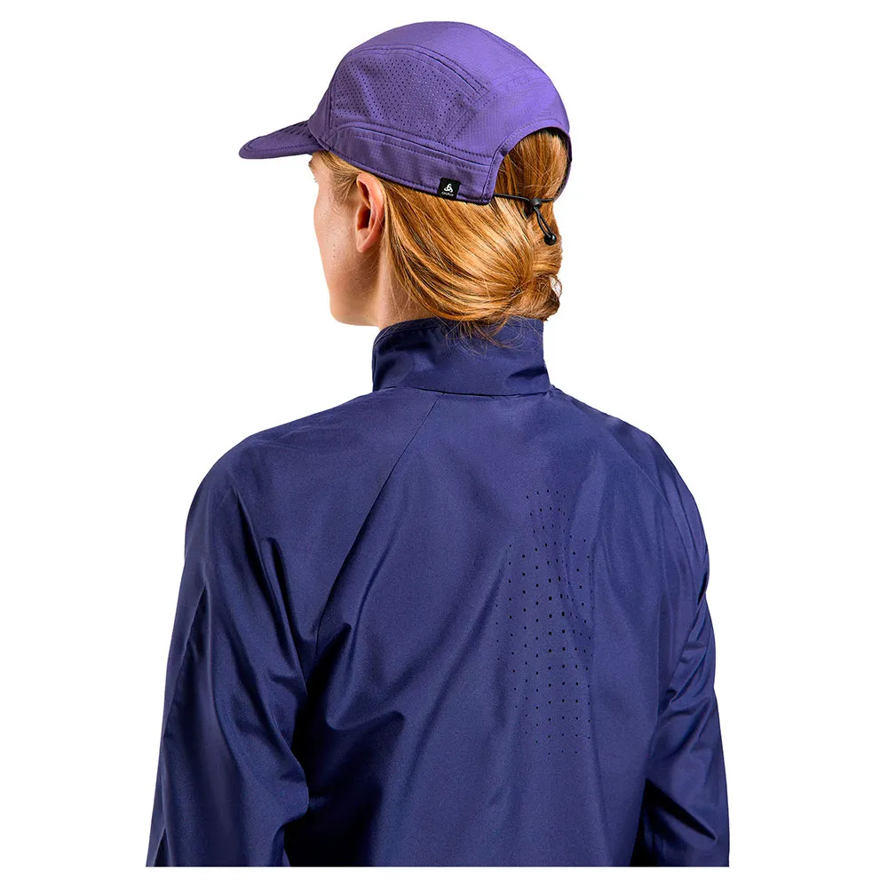 Fremstillet af et let ripstop-stretchmateriale på de øverste paneler for solbeskyttelse og et strækbart mesh med laserskåret ventilation på sidepanelerne for åndbarhed, Odlo´s Performance Pro løbekasket er lavet til varme løbeture, vandreture og mere.