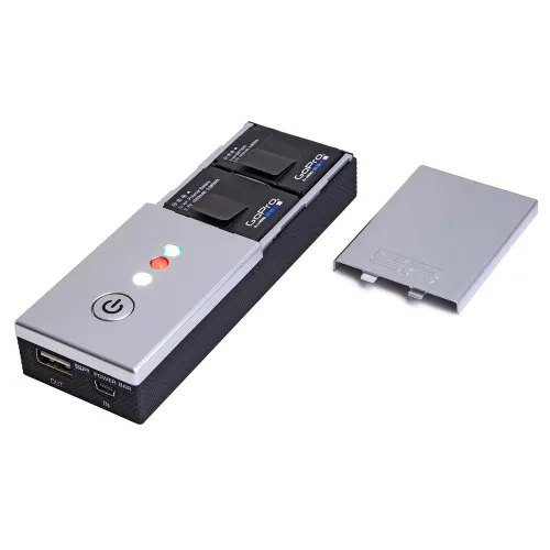 Din mobil ladestation til 2 Hero3 batterier og mange USB-enheder.