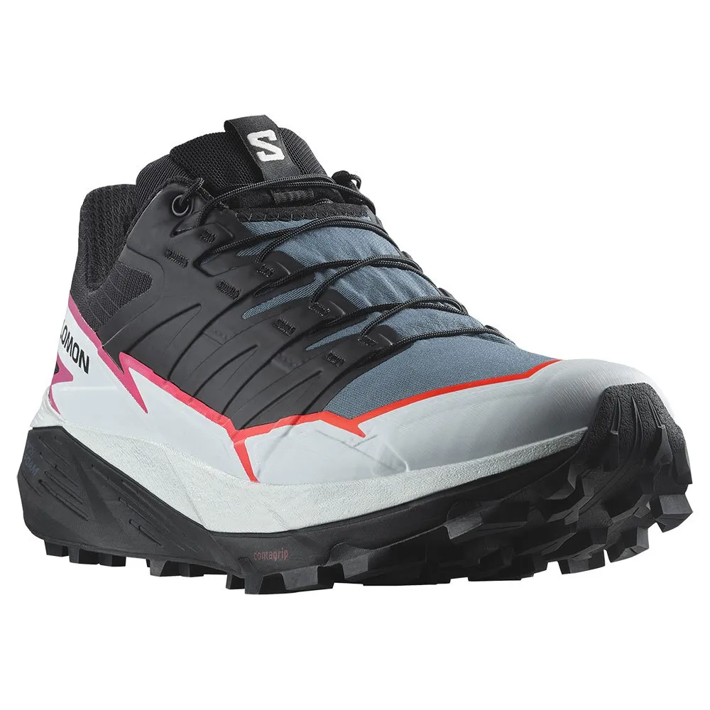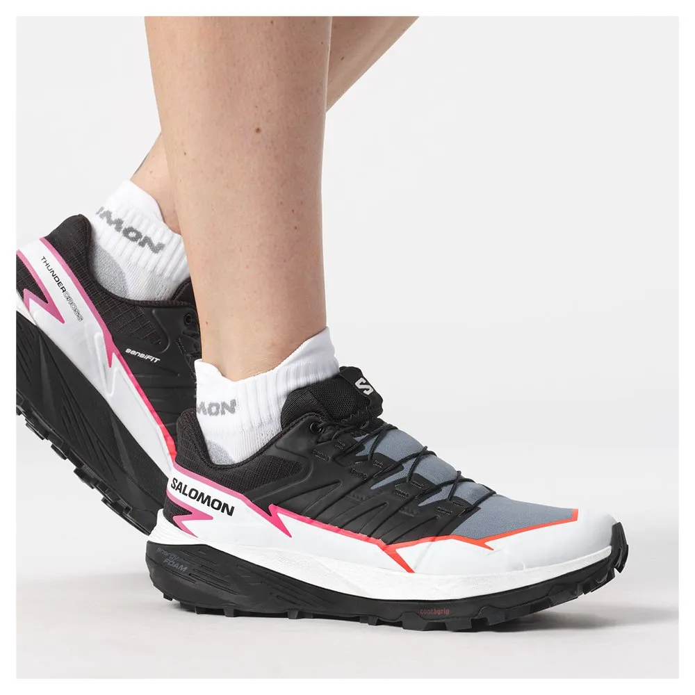 Dynamisk stødabsorbering og kompromisløst greb. SALOMON Thundercross leverer en responsiv, stødabsorberende løbeoplevelse med enestående greb og et præcist fodfæste. Udviklet i de franske Alper er den udstyret med aggressive 5 mm knopper og en All Terrain Contagrip® ydersål til at erobre ethvert terræn – fra stenede skråninger til mudrede enkeltstier – med total selvtillid. Den lette energyFOAM mellemsål giver maksimal stødabsorbering for et jævnt løb, mens anti-debris mesh og Quicklace™-systemet sikrer en sikker, behagelig pasform. Slip dit løb løs på de vildeste stier