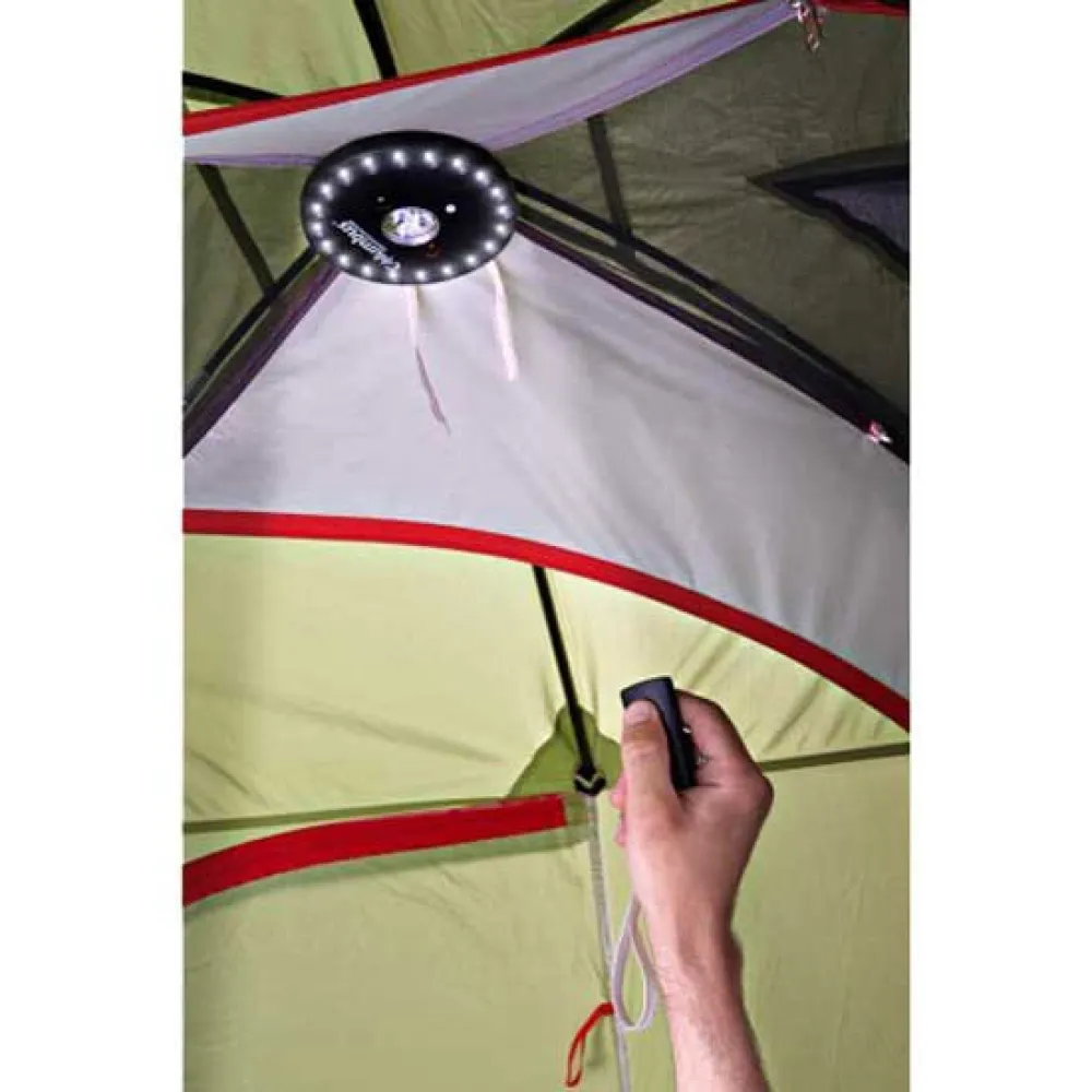 Lampe für Campingzelte, mit Fernbedienung ausgestattet. Drei Leistungsstufen. Kann im Zelt mit einem Magnet oder an einem Haken aufgehängt werden. Sie kann ebenfalls an die Wand gehängt werden. Für den Einsatz in Innen- und Außenbereichen. 23 LEDs. Batterie: 4*AA (nicht mitgeliefert). Material: ABS. Fernbedienung.