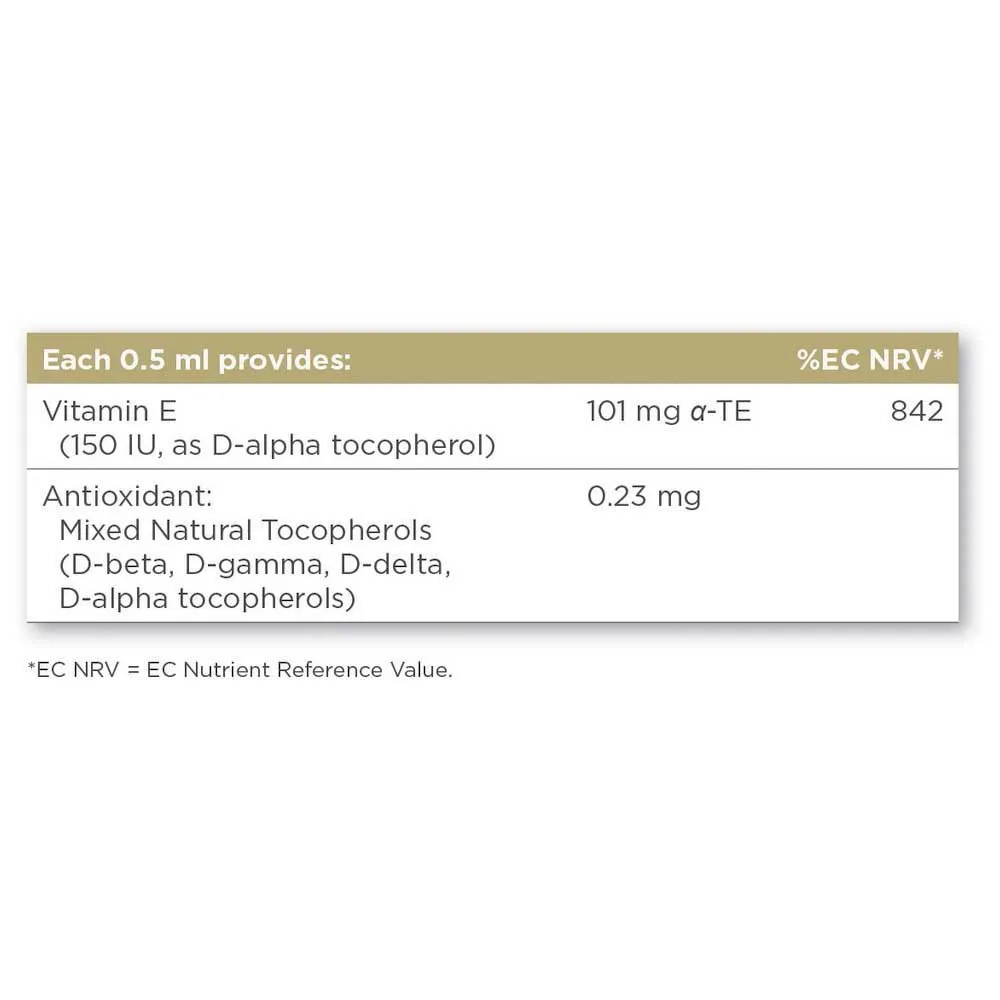 Flüssiges Vitamin E liefert Tropfen Schönheitsunterstützung für die Hautzellen und bietet antioxidativen Schutz vor Schäden durch freie Radikale.