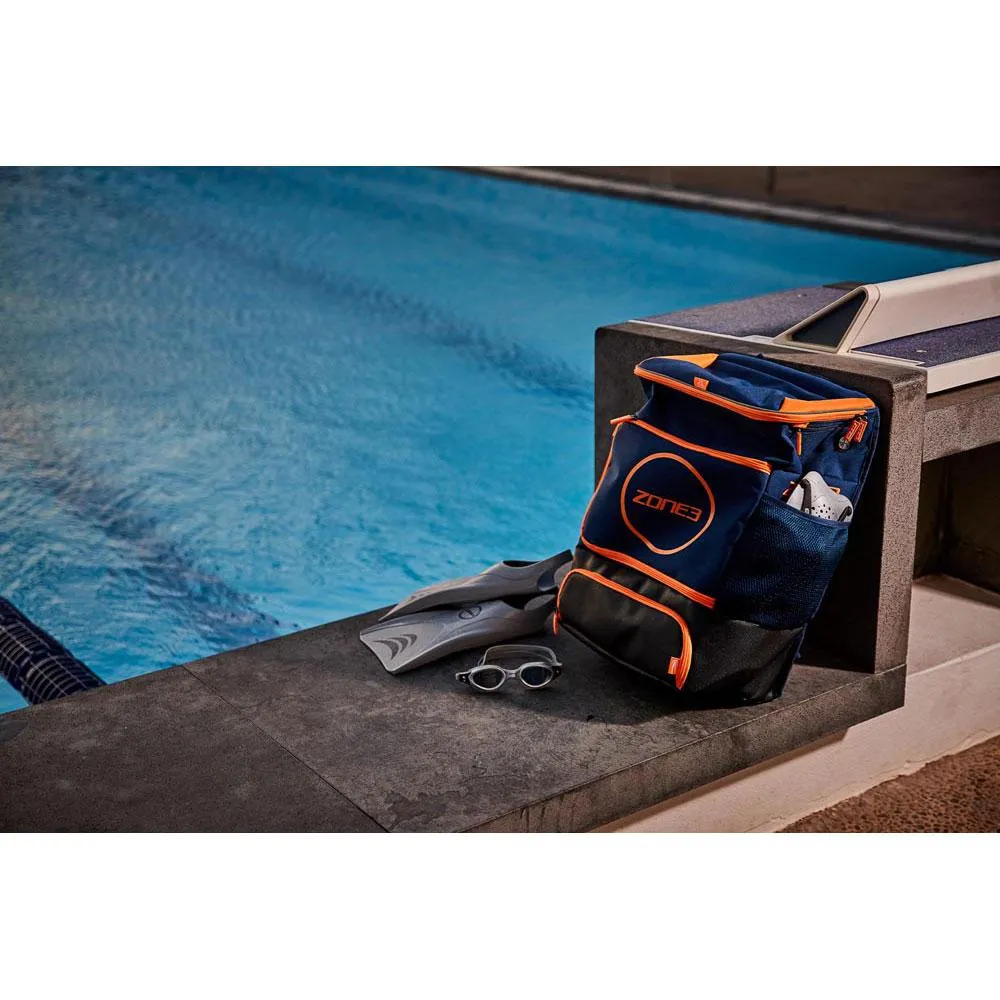 Erleben Sie die ultimative Organisation am Renntag mit dem ZONE3 Transition 40L Rucksack. Sein innovatives Drei-Kammer-System ist für Triathleten konzipiert. Ein 100% wasserdichter Boden trennt Ihren Neoprenanzug ab, das geräumige Mittelfach fasst Schuhe und Kleidung, und das obere Fach bewahrt Ihren Helm und Ihre Verpflegung sicher auf. Seine einzigartige Konstruktion steht aufrecht, während gepolsterte Rückenpaneele und Träger höchsten Komfort bieten. Mit speziellen Taschen für Wertsachen, Schwimmbrillen und Getränke sowie reflektierenden Paspeln für mehr Sicherheit ist dies die perfekte Tasche für jedes Rennen, ob zu Hause oder unterwegs