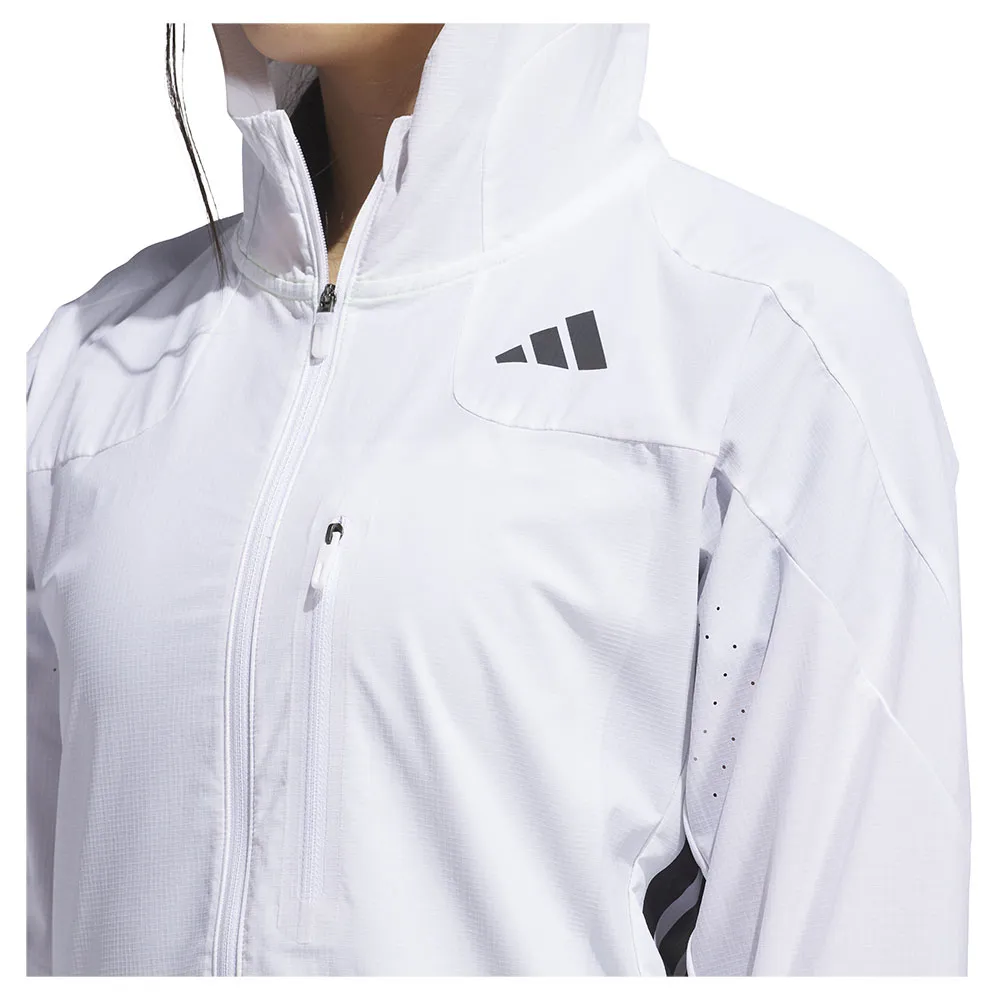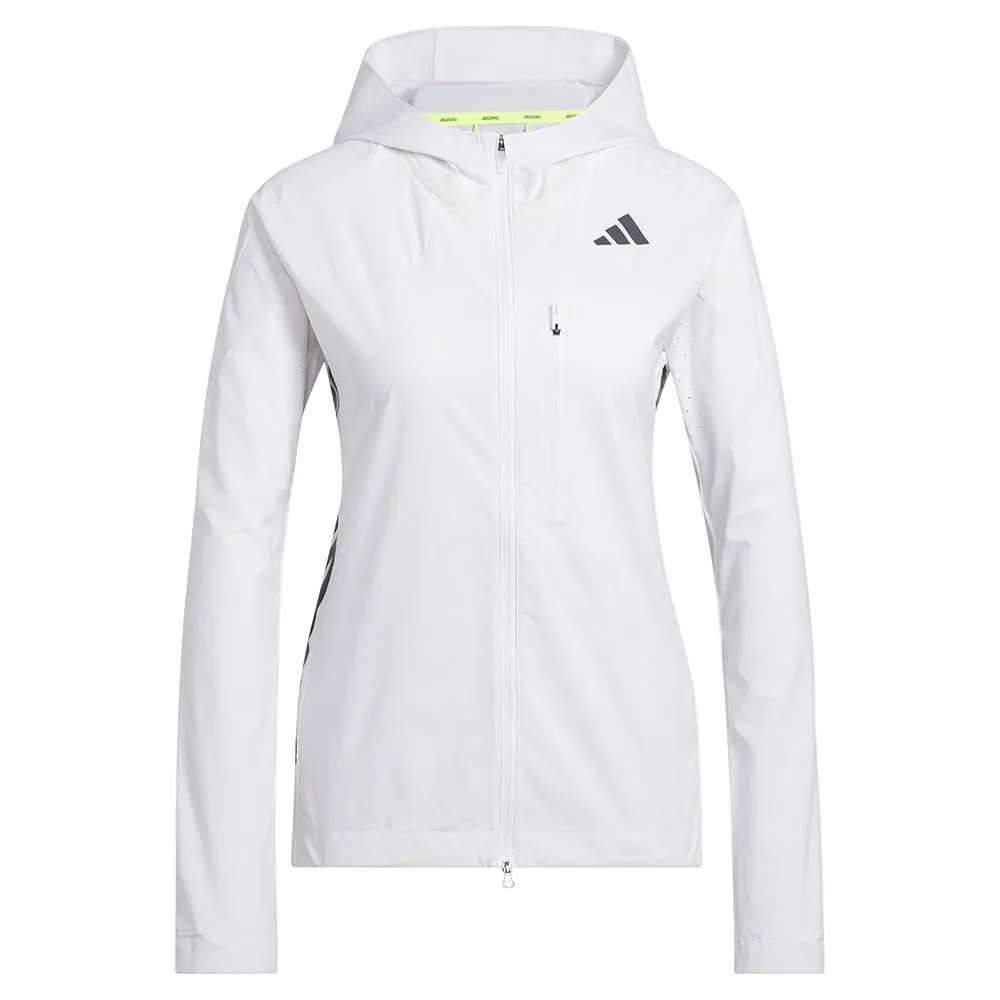 With a slim, aerodynamic fit, built-in vents and wind resistance, this adidas running jacket is ready to help you make breakthroughs in your running.
