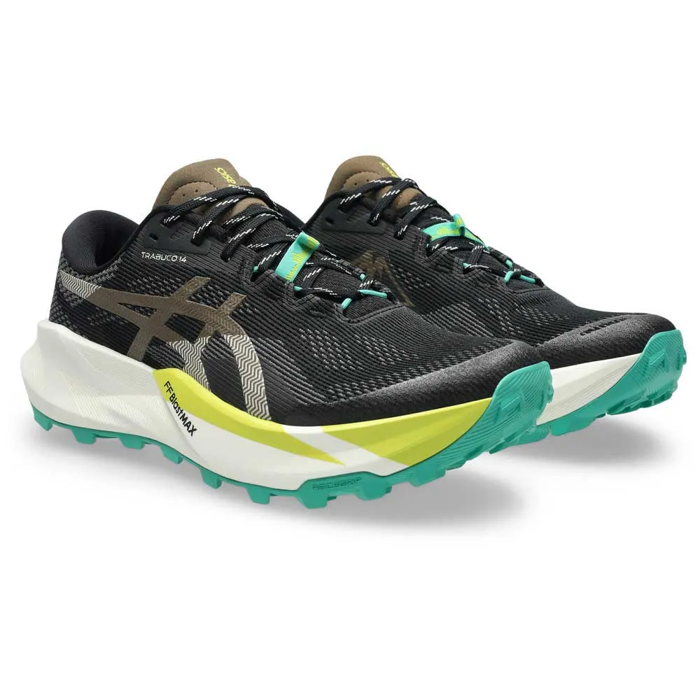 The TRABUCO 14 shoe is designed to help you run through unpredictable trail terrain more confidently. ASICSGRIP technology is positioned in the outsole for advanced traction on off-road surfaces. Approximately 4 grams lighter than the previous version, this shoe features an extra 2mm of FF BLAST MAX cushioning underfoot. This helps create cloud-like softness at impact and a responsive energy return at toe-off. The shoe has a new trail fit that offers a more supportive midfoot lockdown. This helps reduce movement within the shoe while providing a wider forefoot that allows for more comfort on long trail runs.