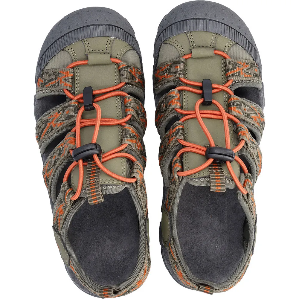 A kids´ version of the men´s adult model, KIDS SAHIPH is an athletic outdoor sandal with a closed toe which features an upper made of fabric straps set on a microfibre footbed.